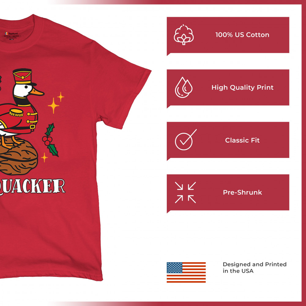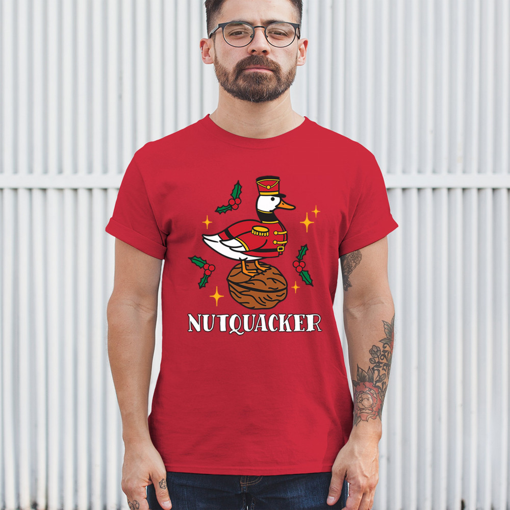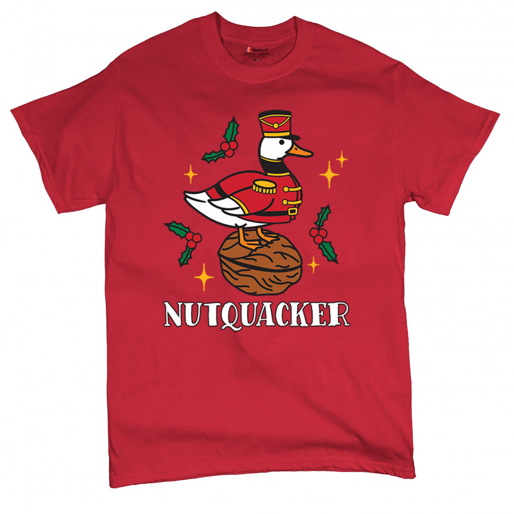 Funny Nutquacker Christmas design featuring a festive duck, holiday humor, and seasonal charm. Great for parties, gifts, and cheerful holiday style.