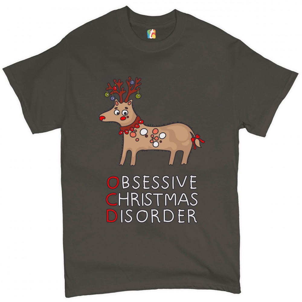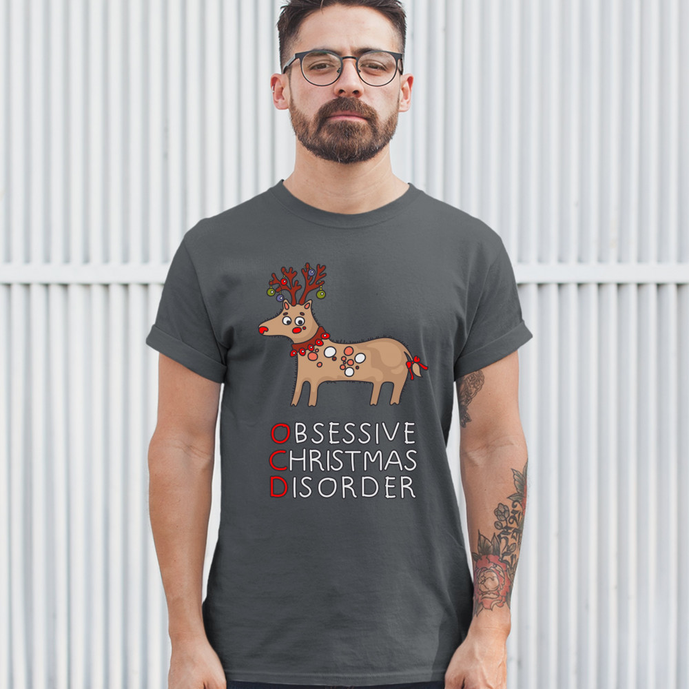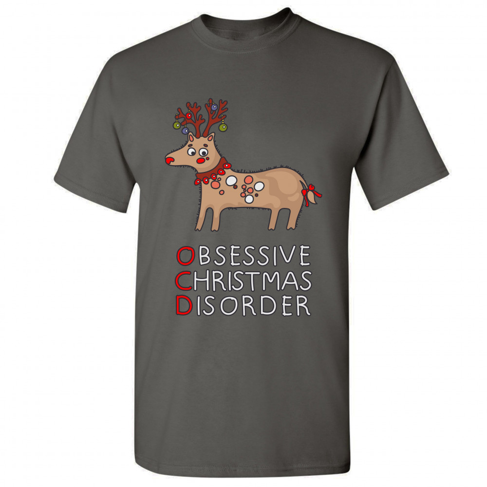 OCD OBSESSIVE CHRISTMAS DISORDER t-shirt reindeer rudolph funny men's tee charcoal