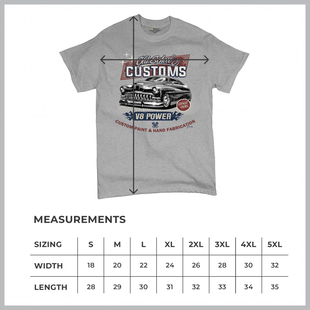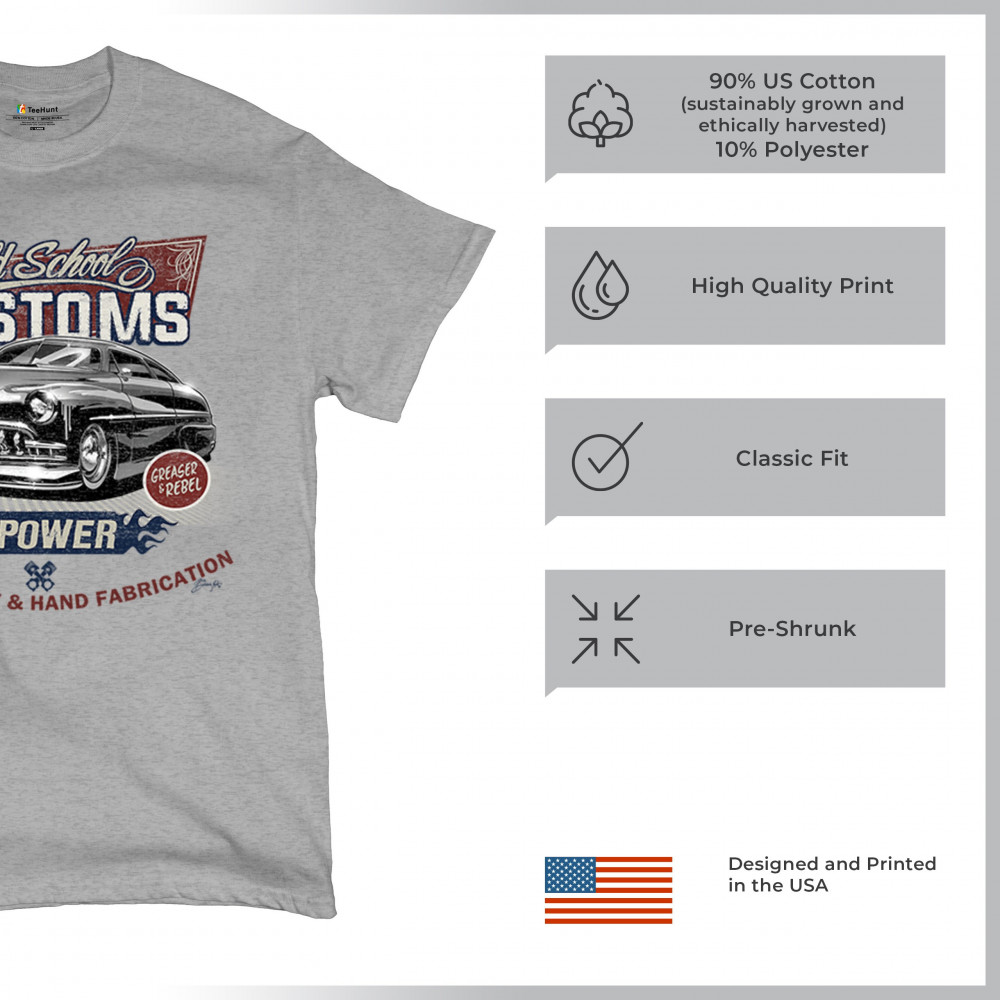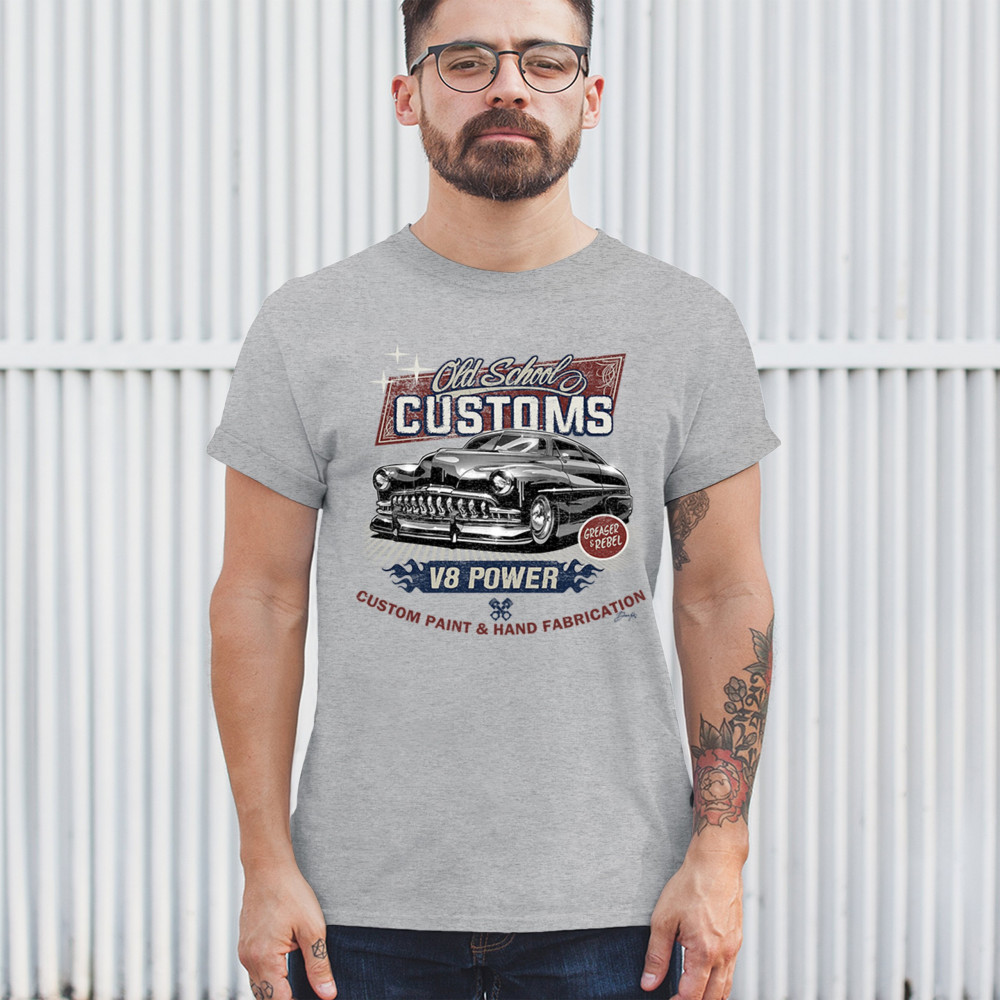 Step into the world of classic automotive culture with our "Old School Customs" t-shirt. Featuring a bold V8 power design, this shirt highlights the art of custom paint and hand fabrication. It's perfect for car enthusiasts, greasers, and rebels who appreciate the unique style of vintage rides. Made from high-quality materials, this tee offers comfort and durability, making it a great choice for car shows or casual outings. Show your love for old-school cars and stand out with this stylish and nostalgic piece. Add a touch of vintage charm to your wardrobe today.