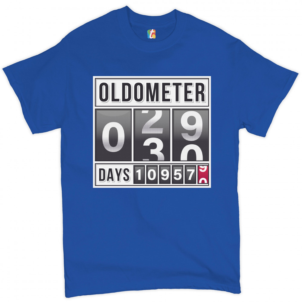OLDOMETER 29-30 t-shirt funny odometer anniversary birthday men's tee royal blue