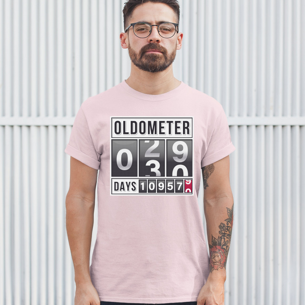 OLDOMETER 29-30 t-shirt funny odometer anniversary birthday men's tee light pink
