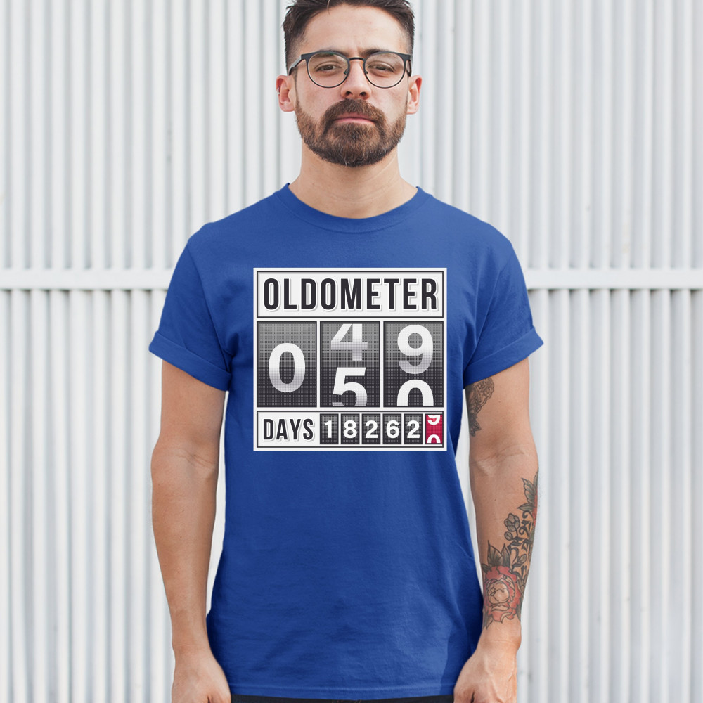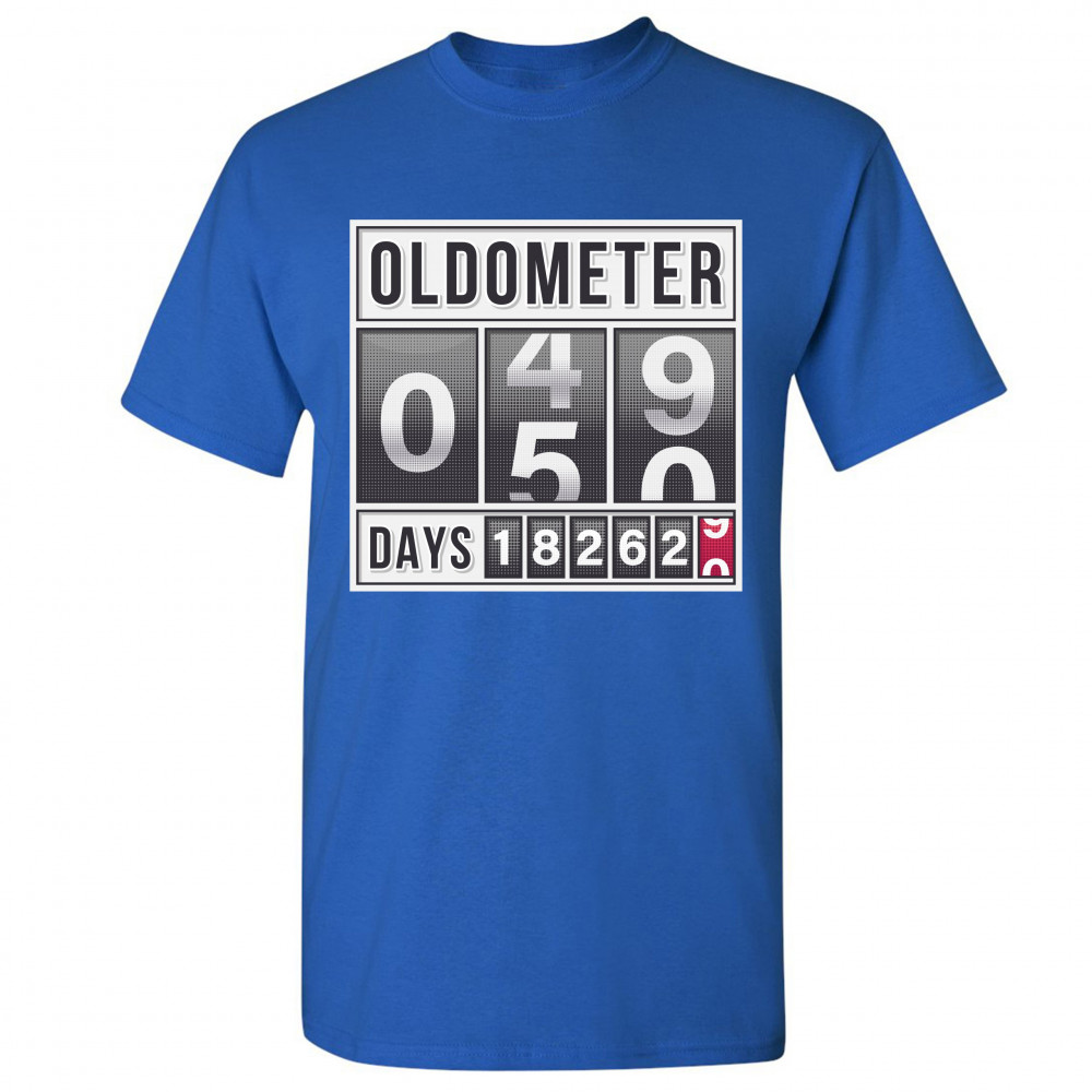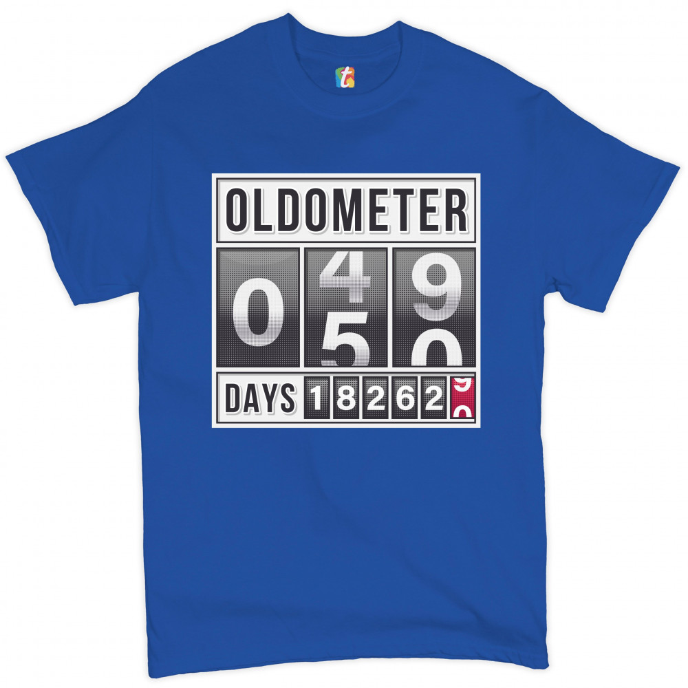 OLDOMETER 49-50 t-shirt 50th anniversary 50 af funny odometer men's tee royal blue