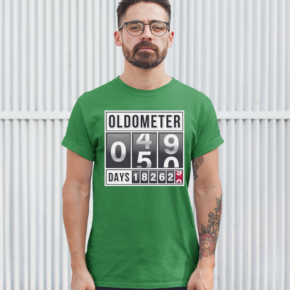 OLDOMETER 49-50 t-shirt 50th anniversary 50 af funny odometer men's tee green