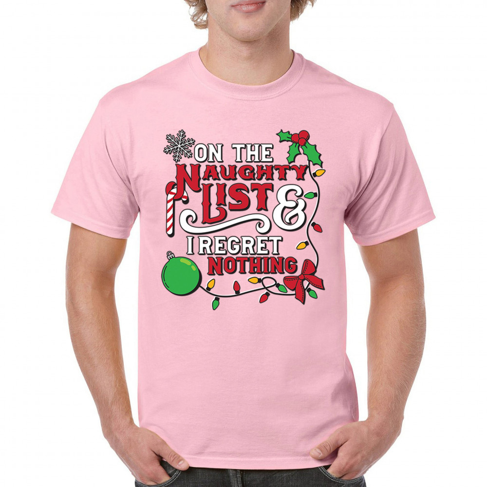 Express your holiday spirit with humor through the "Naughty List & I Regret Nothing" design, a perfect companion for Christmas celebrations, gift exchanges, or festive family gatherings. It adds a touch of playfulness to your winter wardrobe while spreading joy and laughter. Ideal for pairing with an ugly sweater or cozy holiday apparel, it’s the ultimate way to stay jolly and carefree throughout the season.