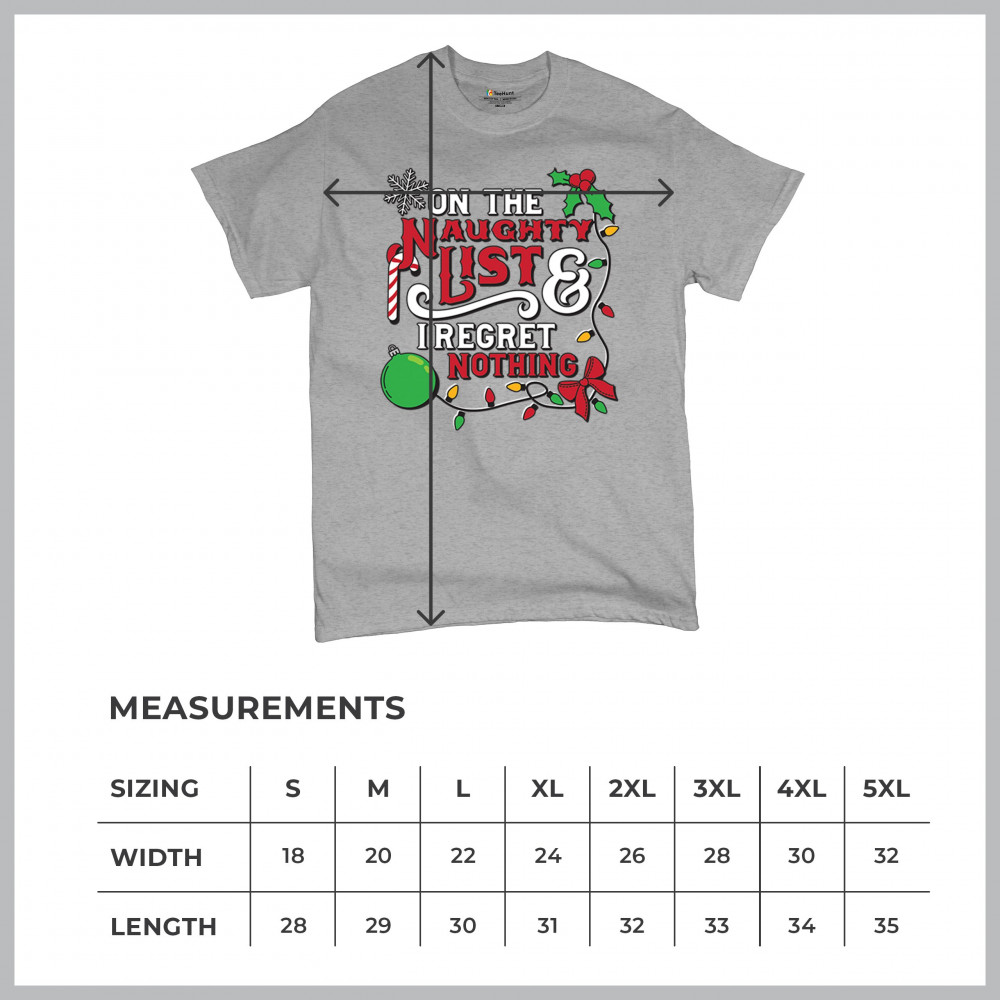 Celebrate the holidays with the playful “Naughty List & I Regret Nothing†design. Perfect for festive gatherings, ugly sweater parties, and holiday fun!