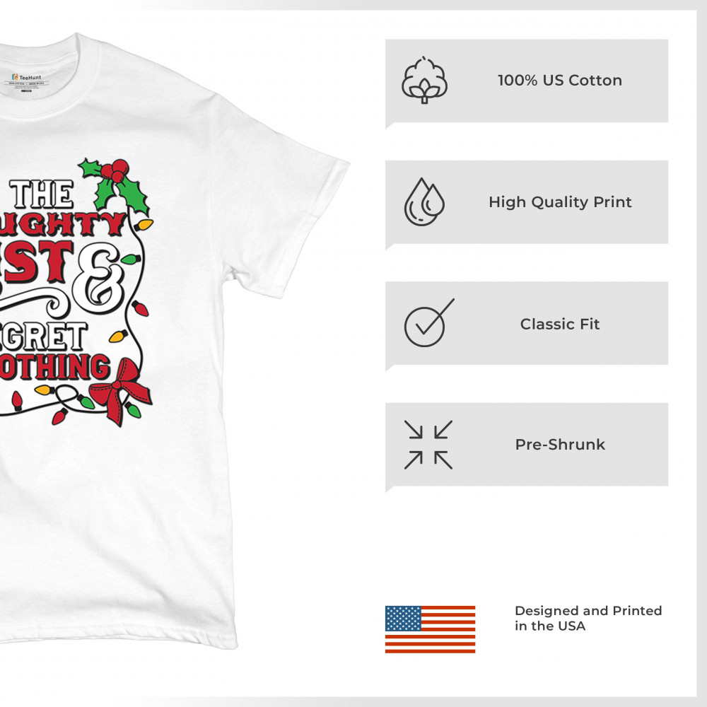 Express your holiday spirit with humor through the "Naughty List & I Regret Nothing" design, a perfect companion for Christmas celebrations, gift exchanges, or festive family gatherings. It adds a touch of playfulness to your winter wardrobe while spreading joy and laughter. Ideal for pairing with an ugly sweater or cozy holiday apparel, it’s the ultimate way to stay jolly and carefree throughout the season.