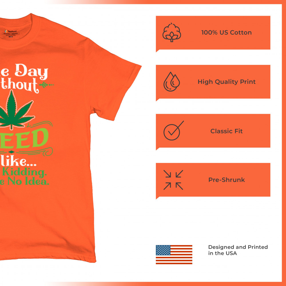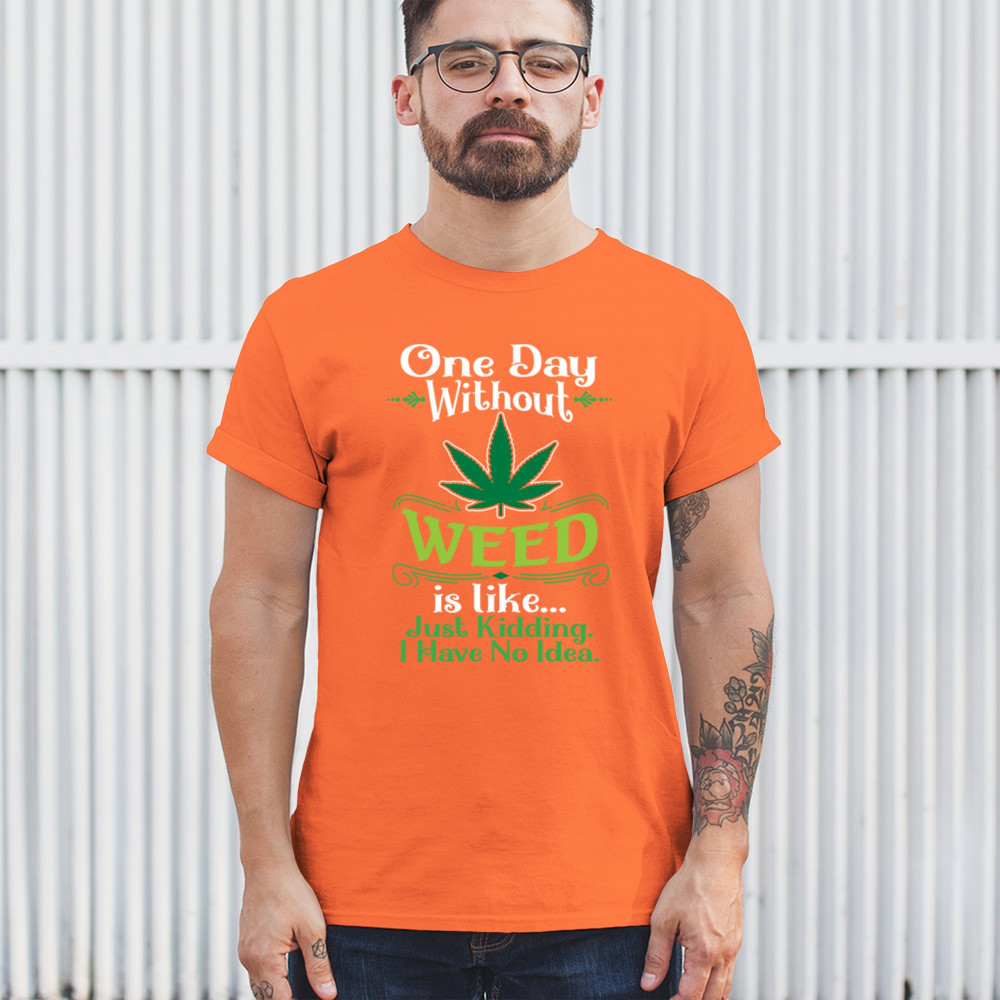 Humorous "One Day Without Weed" design with a bold cannabis leaf. Perfect for fans of Mary Jane, stoned humor, and relaxed, trippy style. Ideal for chill vibes.