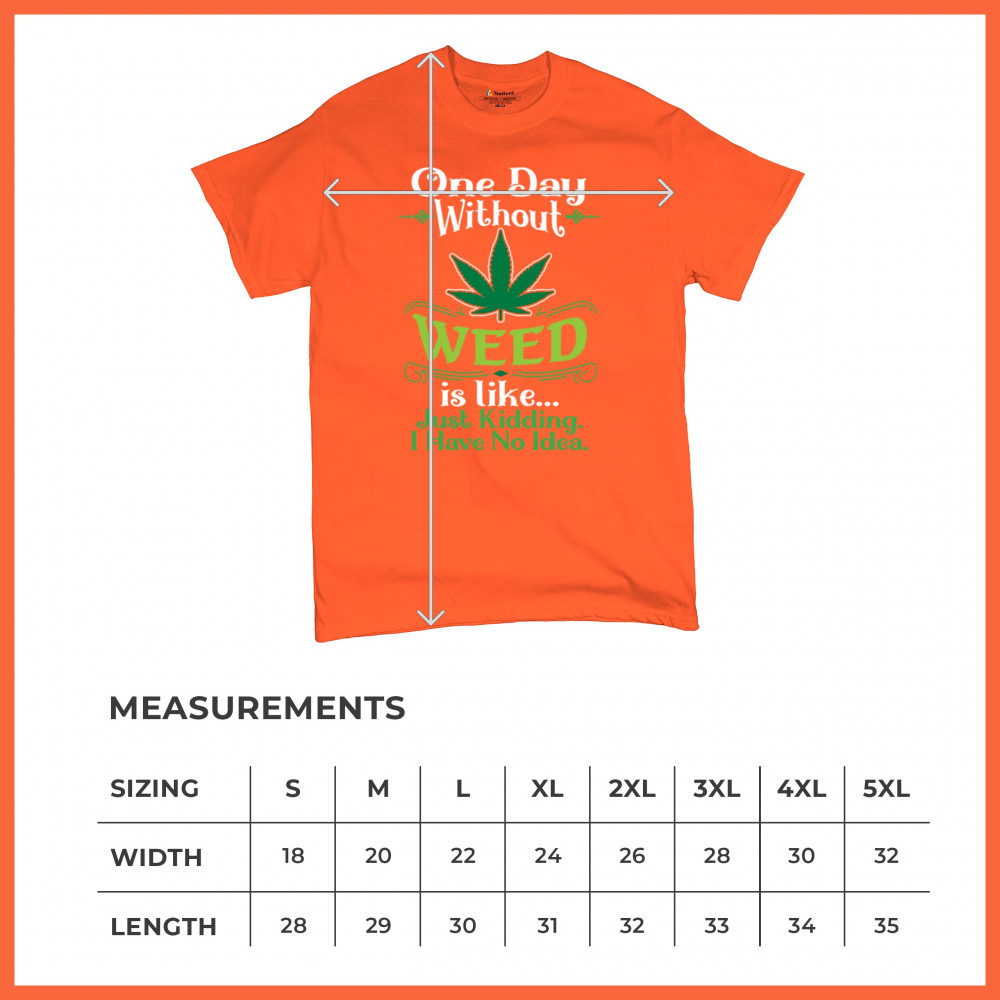 Express your love for Mary Jane and your sense of humor with our "One Day Without Weed" design. Featuring a bold cannabis leaf and a playful, witty message, this design is perfect for those who enjoy the chill vibes of cannabis culture. Ideal for relaxing with your best buds, making a statement about legalization, or simply adding some fun to your wardrobe. Embrace the stoned humor and show off your relaxed, trippy style with this unique design.