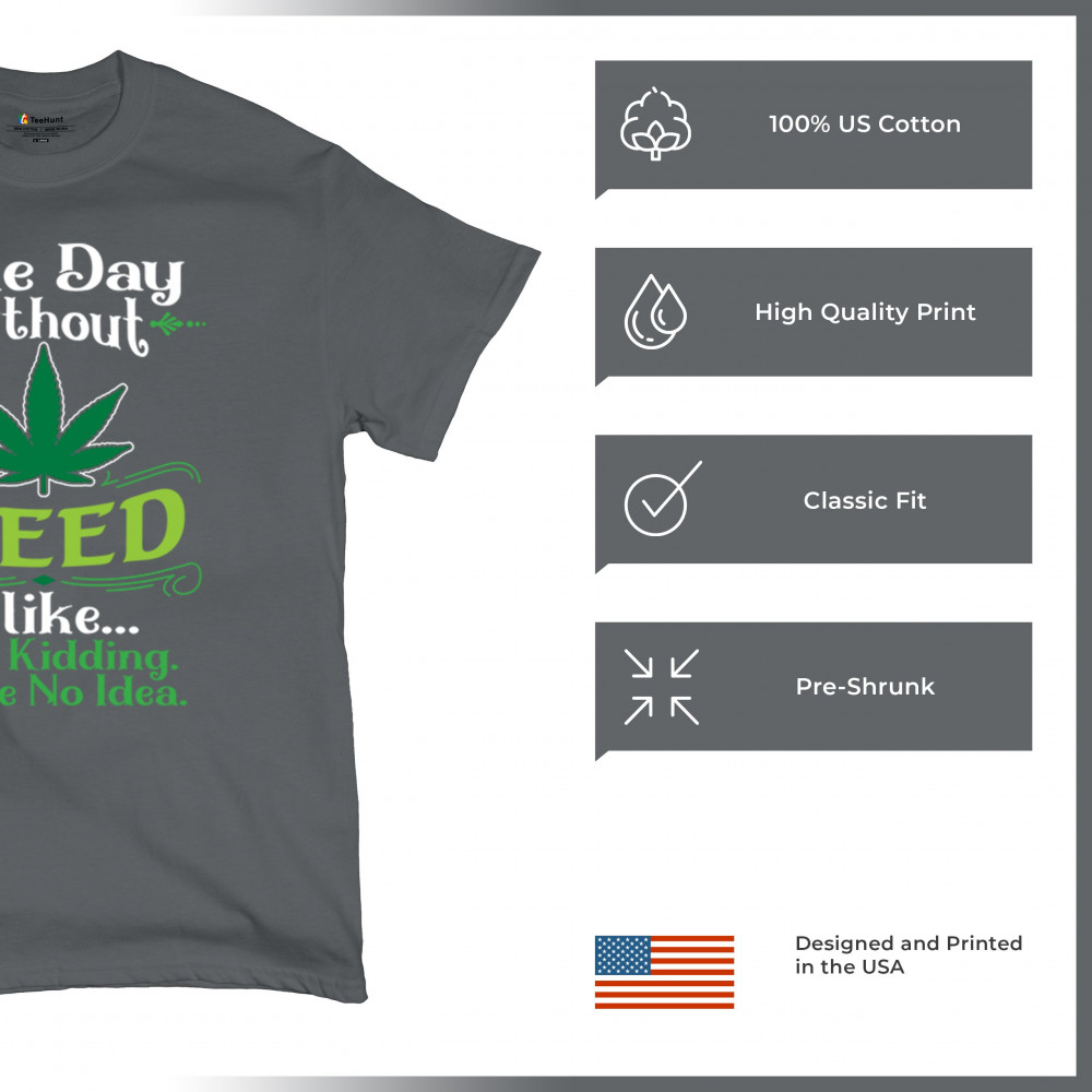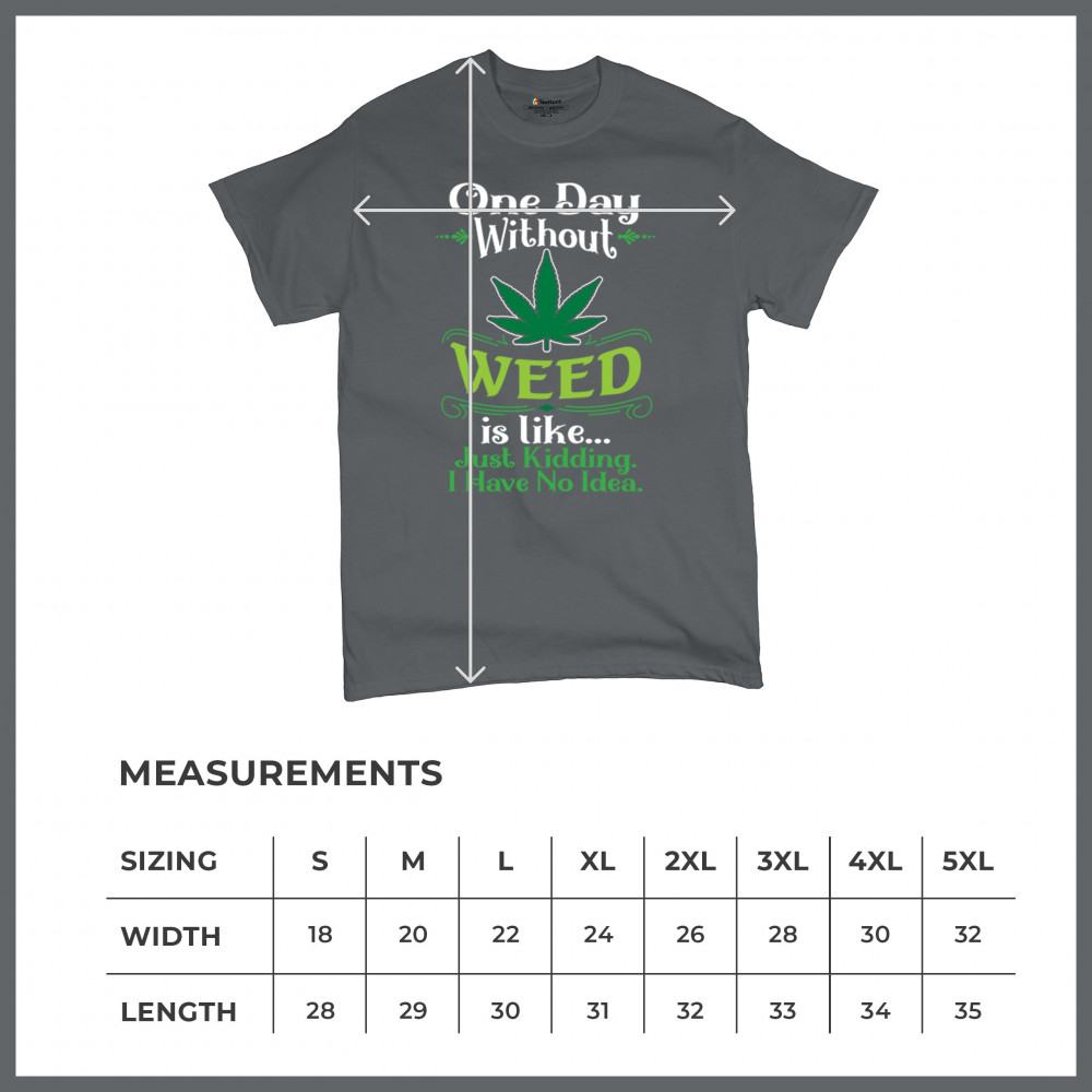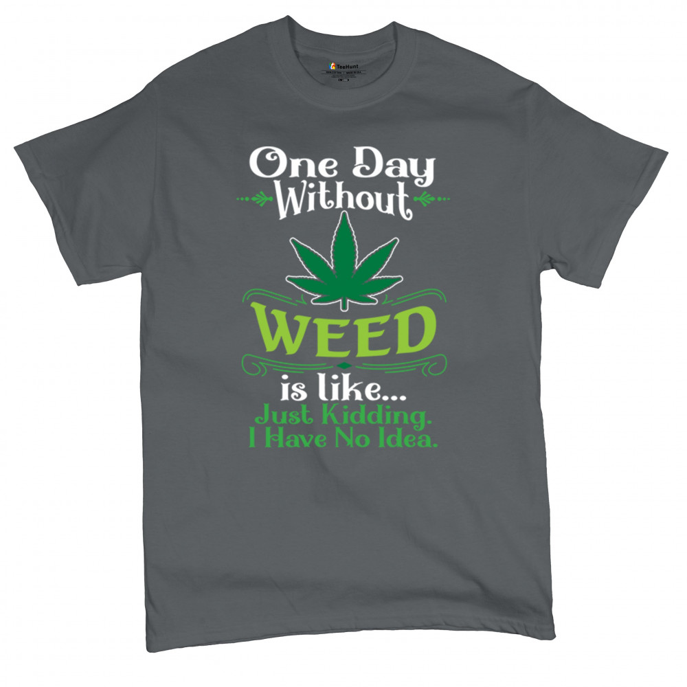 Express your love for Mary Jane and your sense of humor with our "One Day Without Weed" design. Featuring a bold cannabis leaf and a playful, witty message, this design is perfect for those who enjoy the chill vibes of cannabis culture. Ideal for relaxing with your best buds, making a statement about legalization, or simply adding some fun to your wardrobe. Embrace the stoned humor and show off your relaxed, trippy style with this unique design.