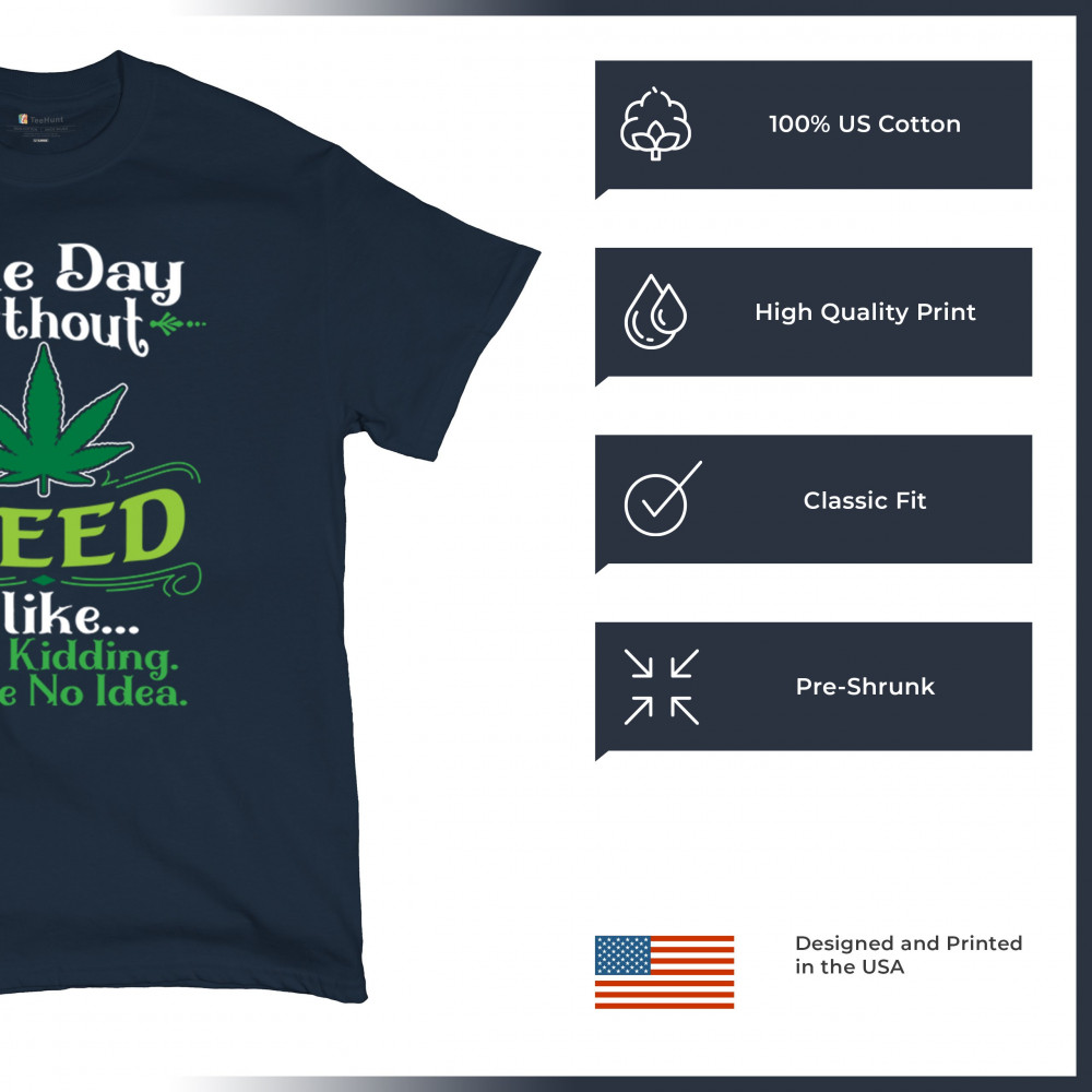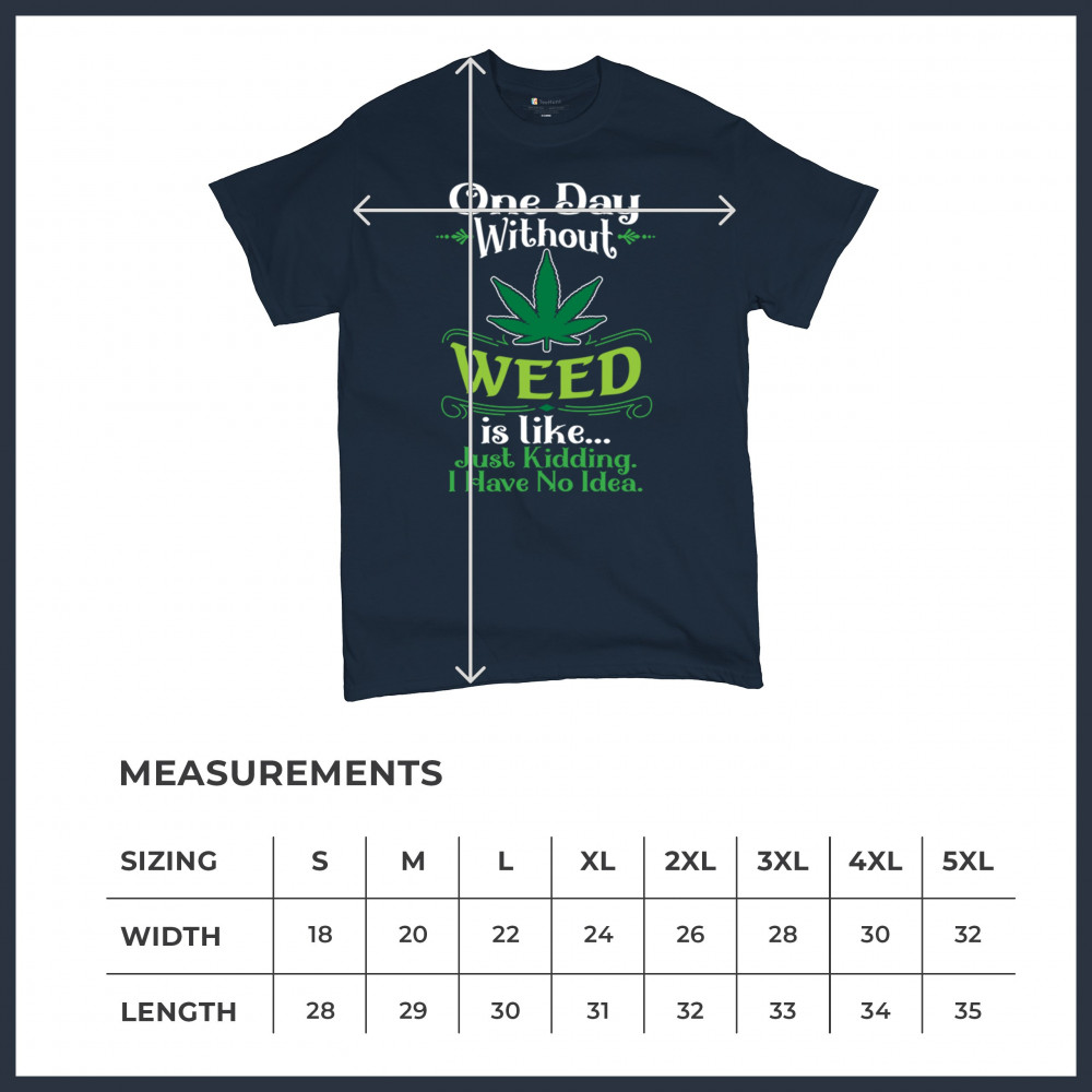 Express your love for Mary Jane and your sense of humor with our "One Day Without Weed" design. Featuring a bold cannabis leaf and a playful, witty message, this design is perfect for those who enjoy the chill vibes of cannabis culture. Ideal for relaxing with your best buds, making a statement about legalization, or simply adding some fun to your wardrobe. Embrace the stoned humor and show off your relaxed, trippy style with this unique design.