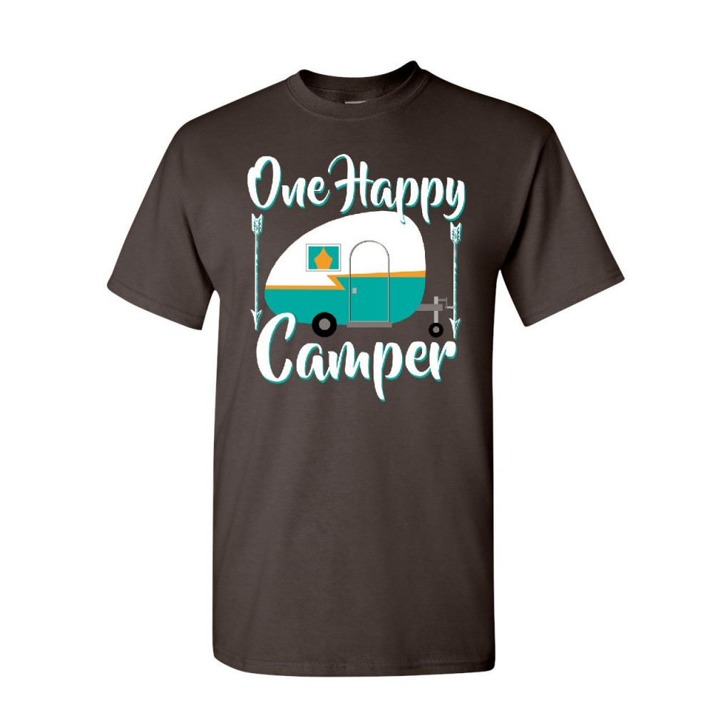 ONE HAPPY CAMPER t-shirt camping roadtrip rv trailer mens tee shirt brown