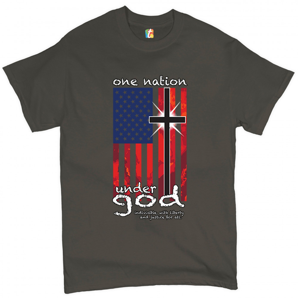 ONE NATION UNDER GOD t-shirt usa american flag patriotic christian men's tee charcoal