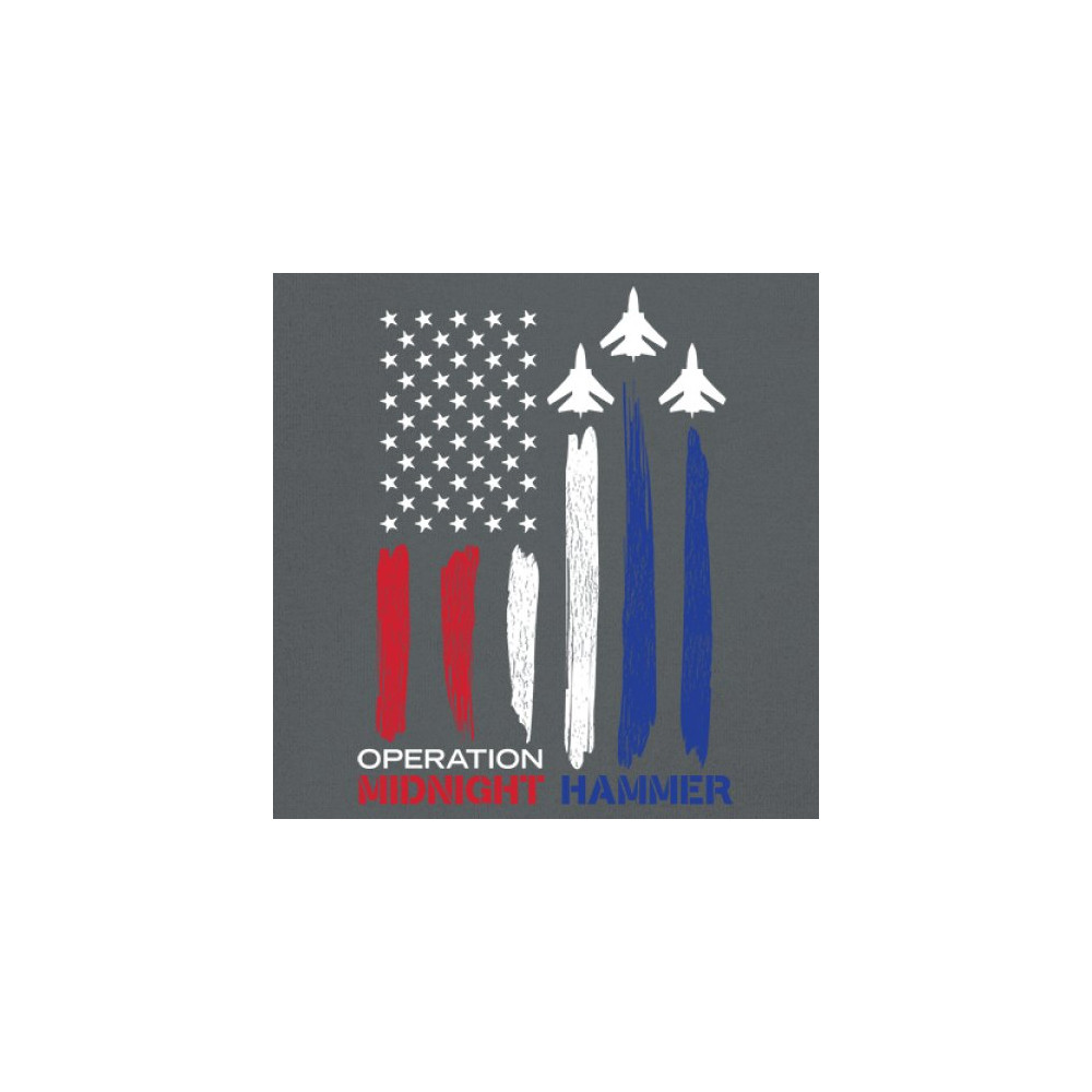 Operation Midnight Hammer design with jets and patriotic flag. Perfect for military pride, conservatives, and true America First supporters.