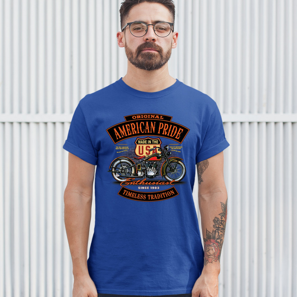 ORIGINAL AMERICAN PRIDE t-shirt biker chopper motorcycle enthusiast men's tee royal blue