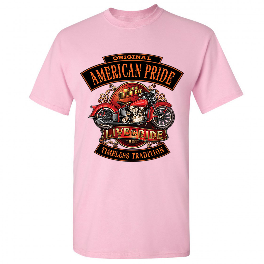 ORIGINAL AMERICAN PRIDE t-shirt live to ride timeless tradition men's tee light pink