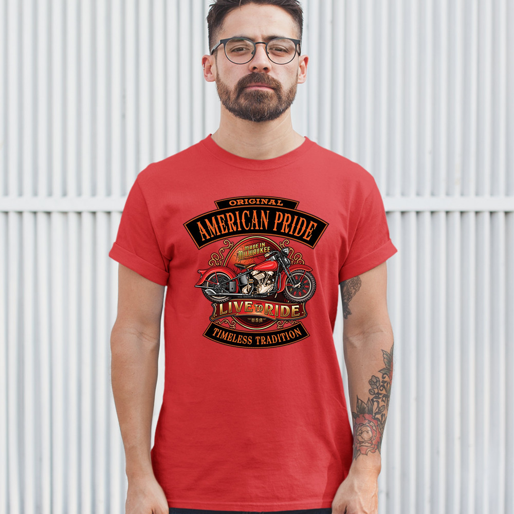 ORIGINAL AMERICAN PRIDE t-shirt live to ride timeless tradition men's tee red