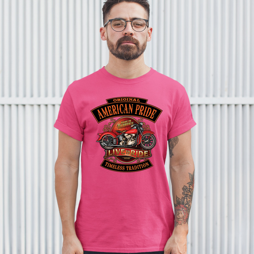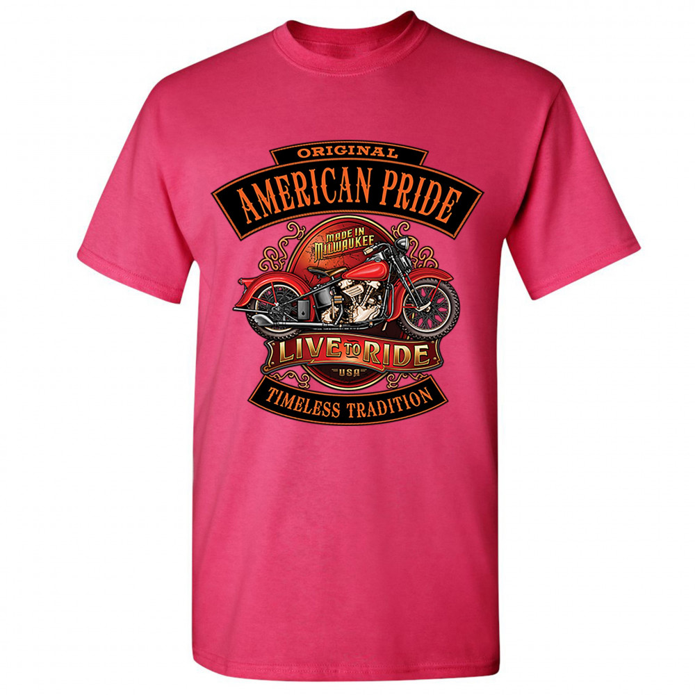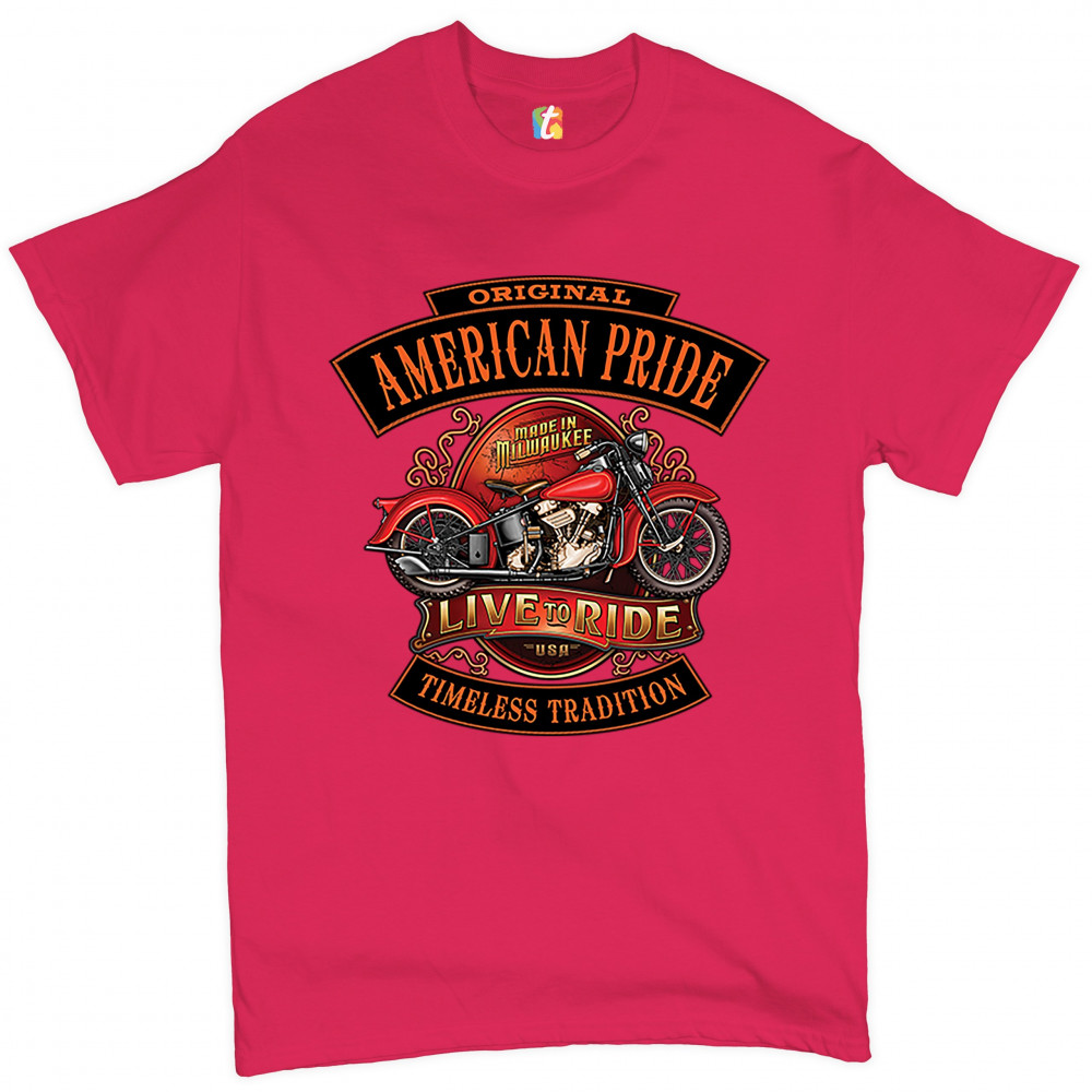 ORIGINAL AMERICAN PRIDE t-shirt live to ride timeless tradition men's tee hot pink