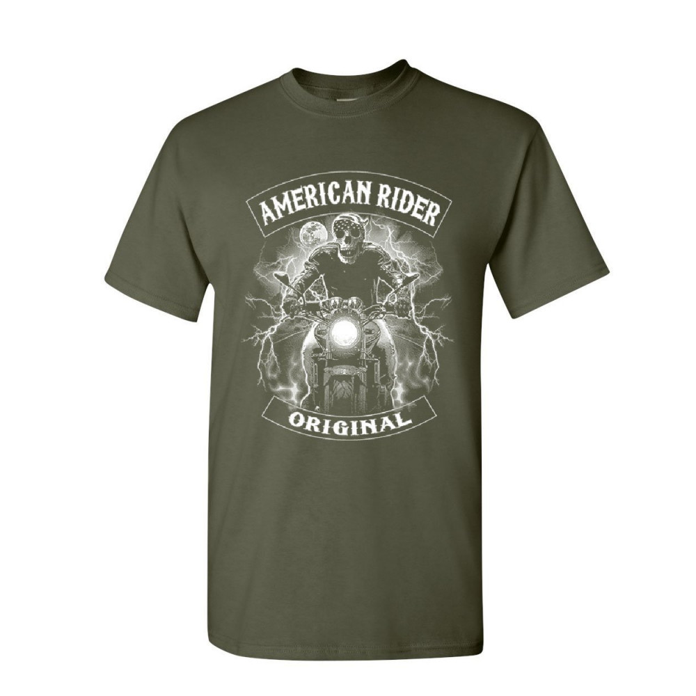 ORIGINAL AMERICAN RIDER t-shirt skull face route 66 biker mc mens tee shirt military green