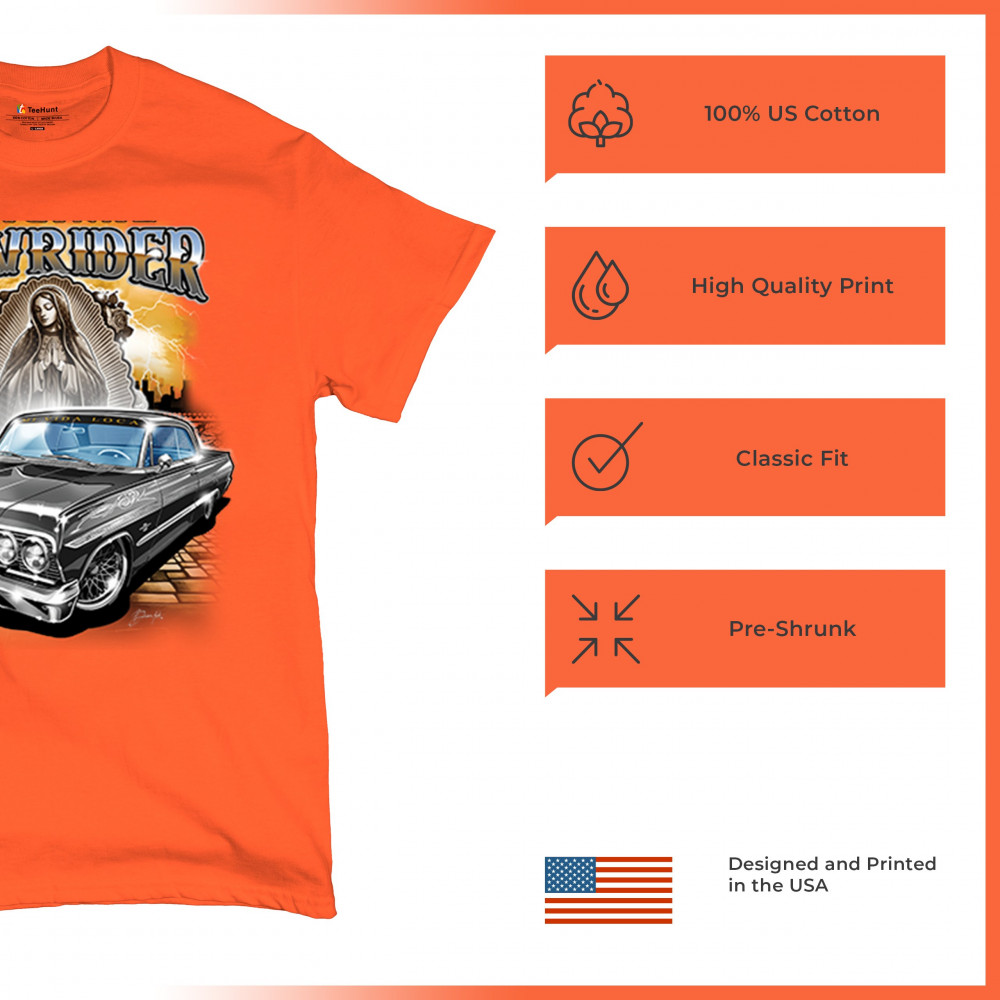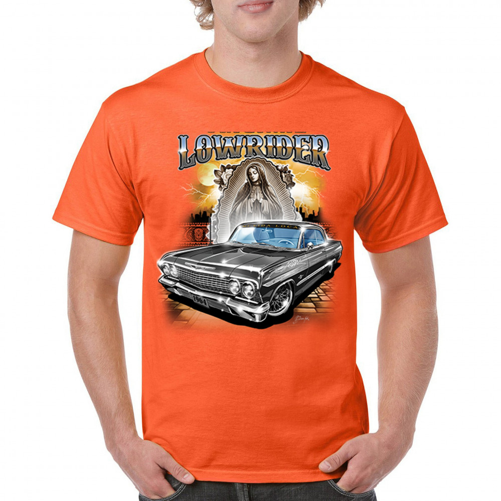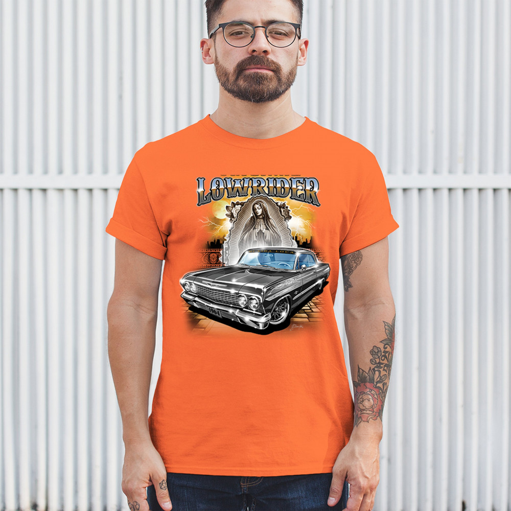 Unleash your love for custom cars with our "Original Lowrider" t-shirt. Showcasing a meticulously detailed 1964 lowrider, this shirt is a must-have for anyone passionate about car culture and street art. Whether you're attending a car show, hitting the streets, or just hanging out, this tee combines style and comfort. Made from premium materials, it ensures lasting quality and a great fit. Make your wardrobe stand out with this iconic lowrider design.