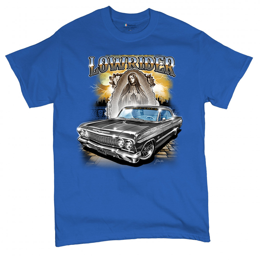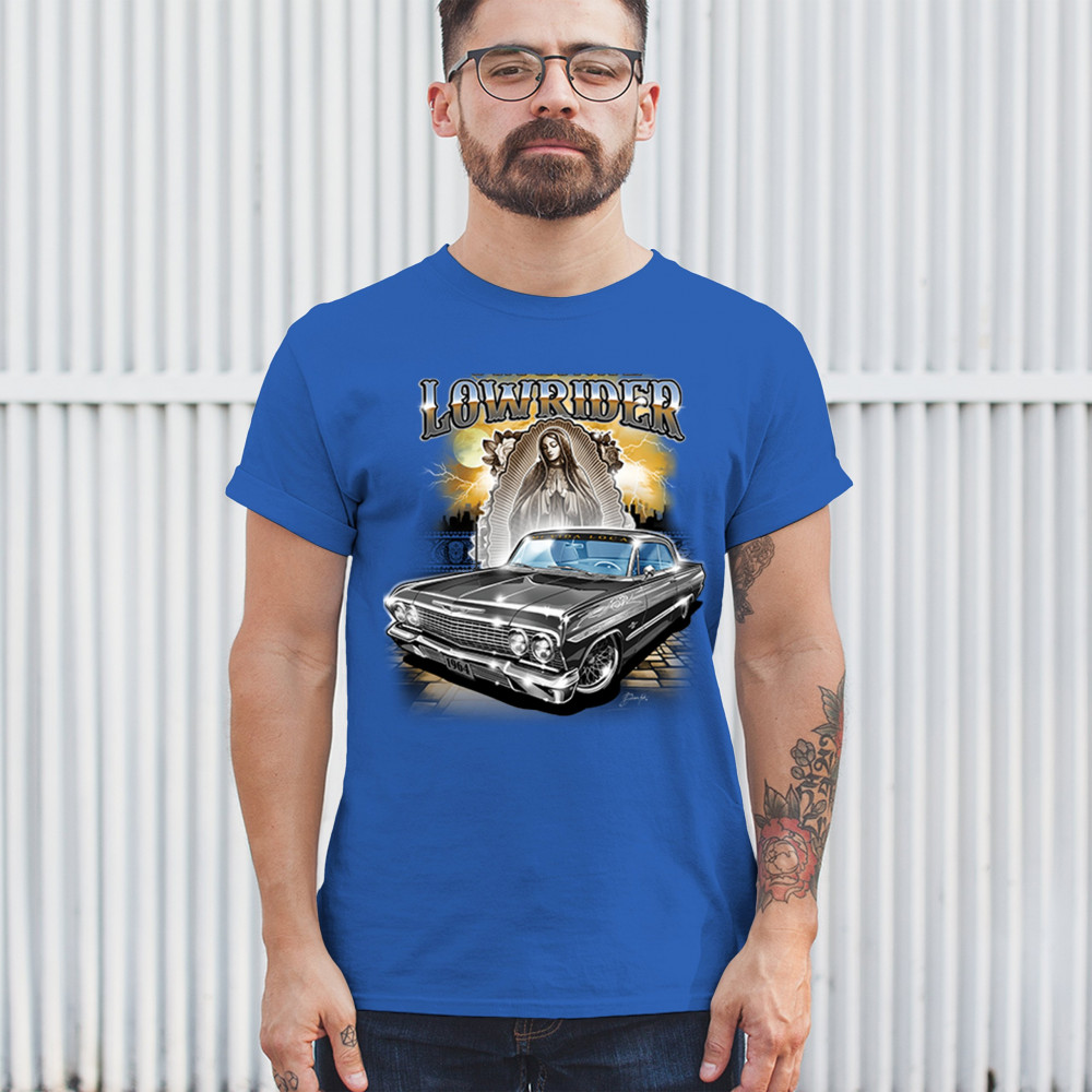 Unleash your love for custom cars with our "Original Lowrider" t-shirt. Showcasing a meticulously detailed 1964 lowrider, this shirt is a must-have for anyone passionate about car culture and street art. Whether you're attending a car show, hitting the streets, or just hanging out, this tee combines style and comfort. Made from premium materials, it ensures lasting quality and a great fit. Make your wardrobe stand out with this iconic lowrider design.