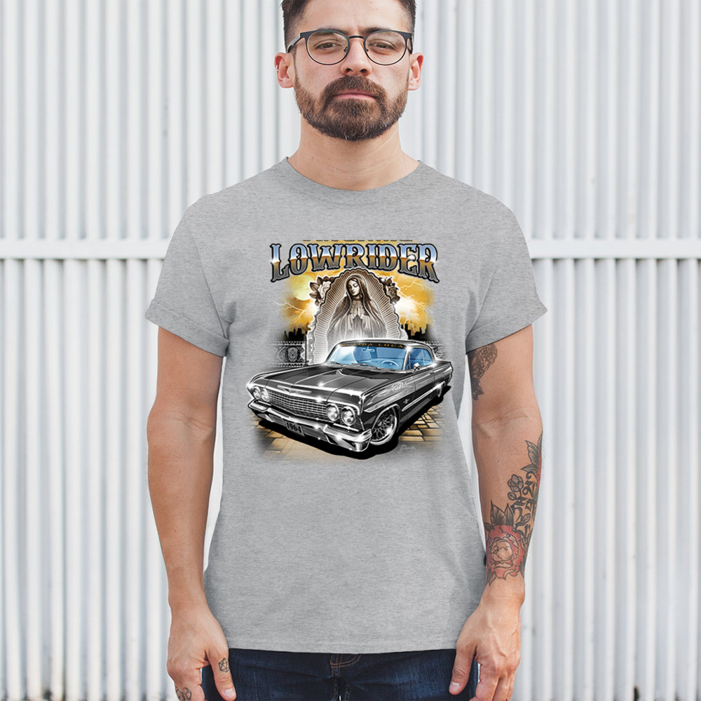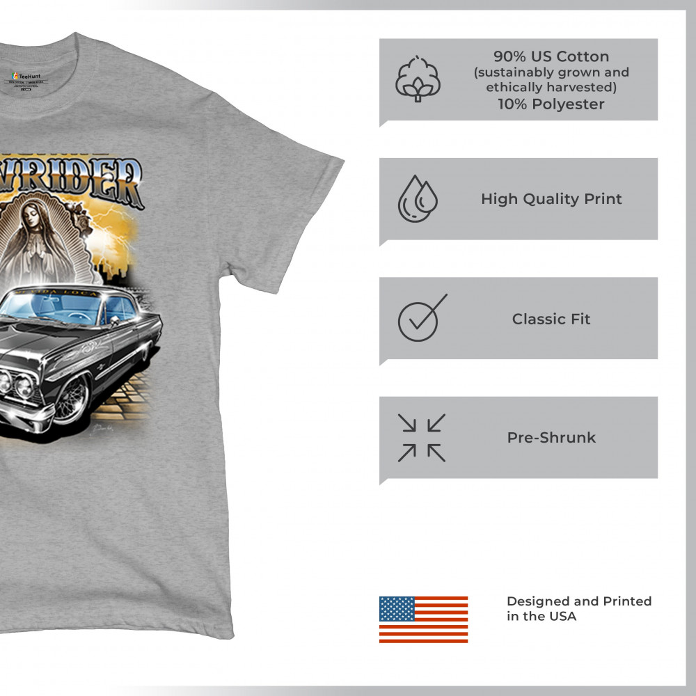Unleash your love for custom cars with our "Original Lowrider" t-shirt. Showcasing a meticulously detailed 1964 lowrider, this shirt is a must-have for anyone passionate about car culture and street art. Whether you're attending a car show, hitting the streets, or just hanging out, this tee combines style and comfort. Made from premium materials, it ensures lasting quality and a great fit. Make your wardrobe stand out with this iconic lowrider design.
