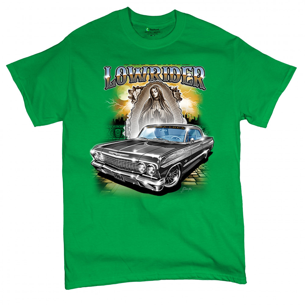 Classic 1964 lowrider t-shirt for custom car enthusiasts. Perfect for car shows, cruising, and casual wear. High-quality, stylish, and durable design.