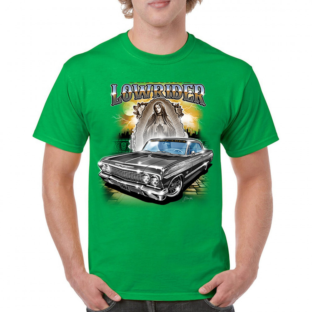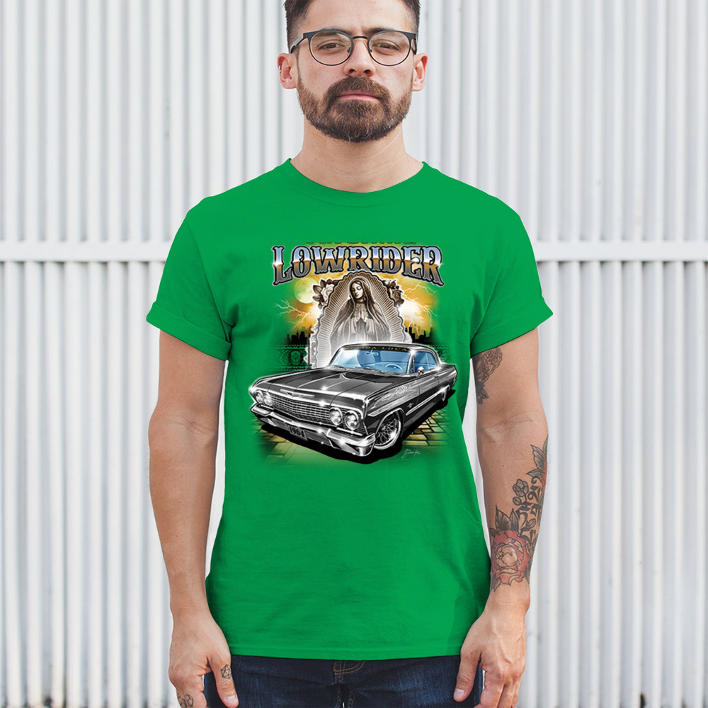Unleash your love for custom cars with our "Original Lowrider" t-shirt. Showcasing a meticulously detailed 1964 lowrider, this shirt is a must-have for anyone passionate about car culture and street art. Whether you're attending a car show, hitting the streets, or just hanging out, this tee combines style and comfort. Made from premium materials, it ensures lasting quality and a great fit. Make your wardrobe stand out with this iconic lowrider design.