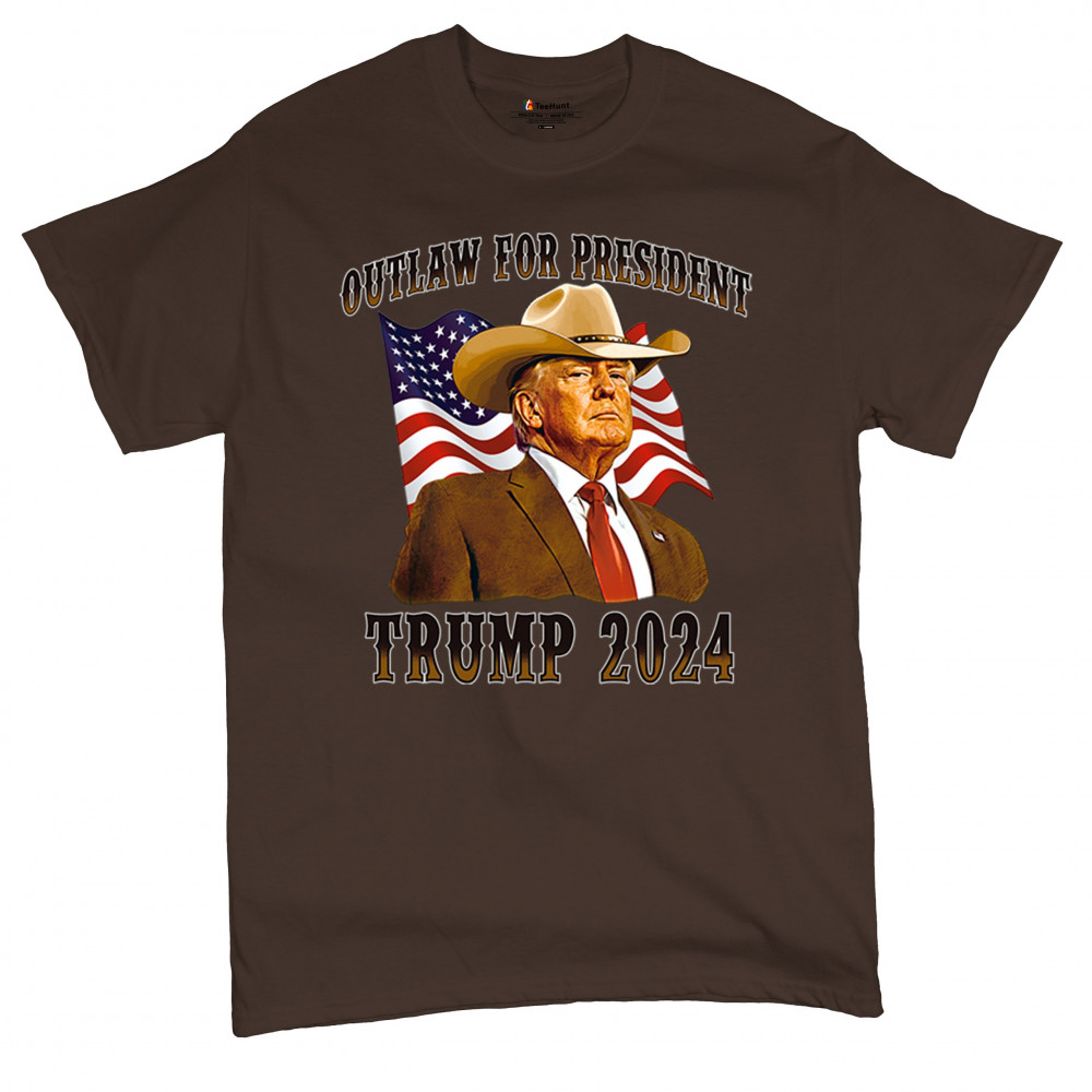 Bold "Outlaw for President" Trump 2024 design for conservative supporters, featuring Donald J. Trump and the American flag. Show your patriotism.