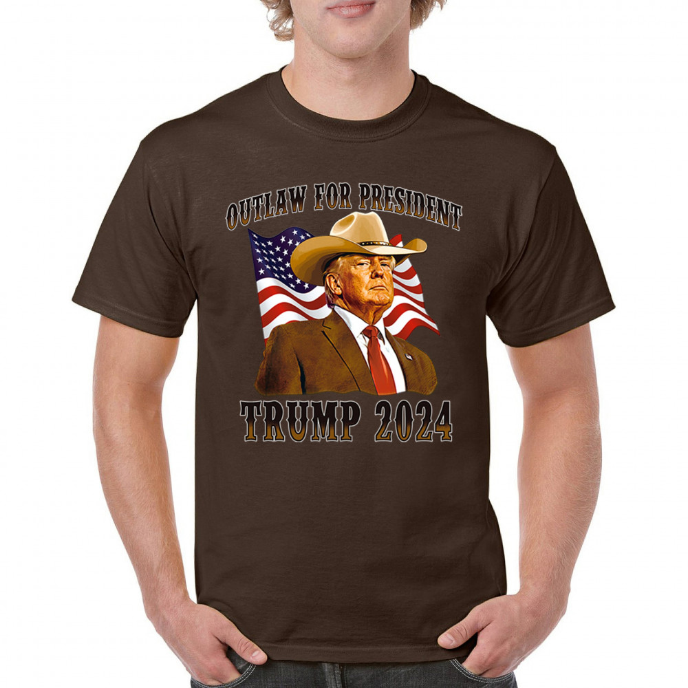 The "Outlaw for President" Trump 2024 design is a powerful symbol of American resilience and conservative pride. Featuring Donald J. Trump in a cowboy hat with the American flag waving behind, this design speaks to supporters who believe in the America First movement, conservative values, and a rebel spirit. Ideal for rallies, patriotic events, and anyone looking to make a bold statement for the 47th President of the United States.