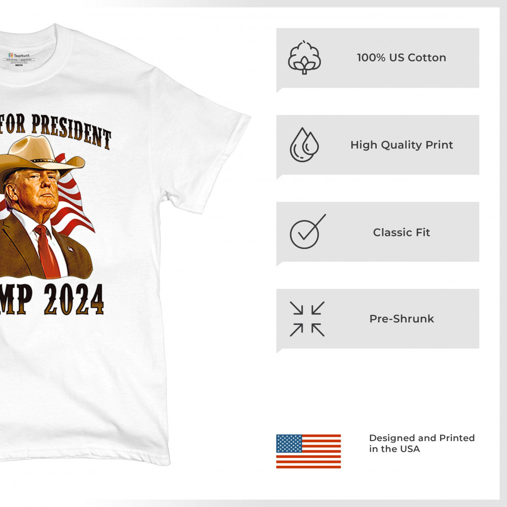 The "Outlaw for President" Trump 2024 design is a powerful symbol of American resilience and conservative pride. Featuring Donald J. Trump in a cowboy hat with the American flag waving behind, this design speaks to supporters who believe in the America First movement, conservative values, and a rebel spirit. Ideal for rallies, patriotic events, and anyone looking to make a bold statement for the 47th President of the United States.