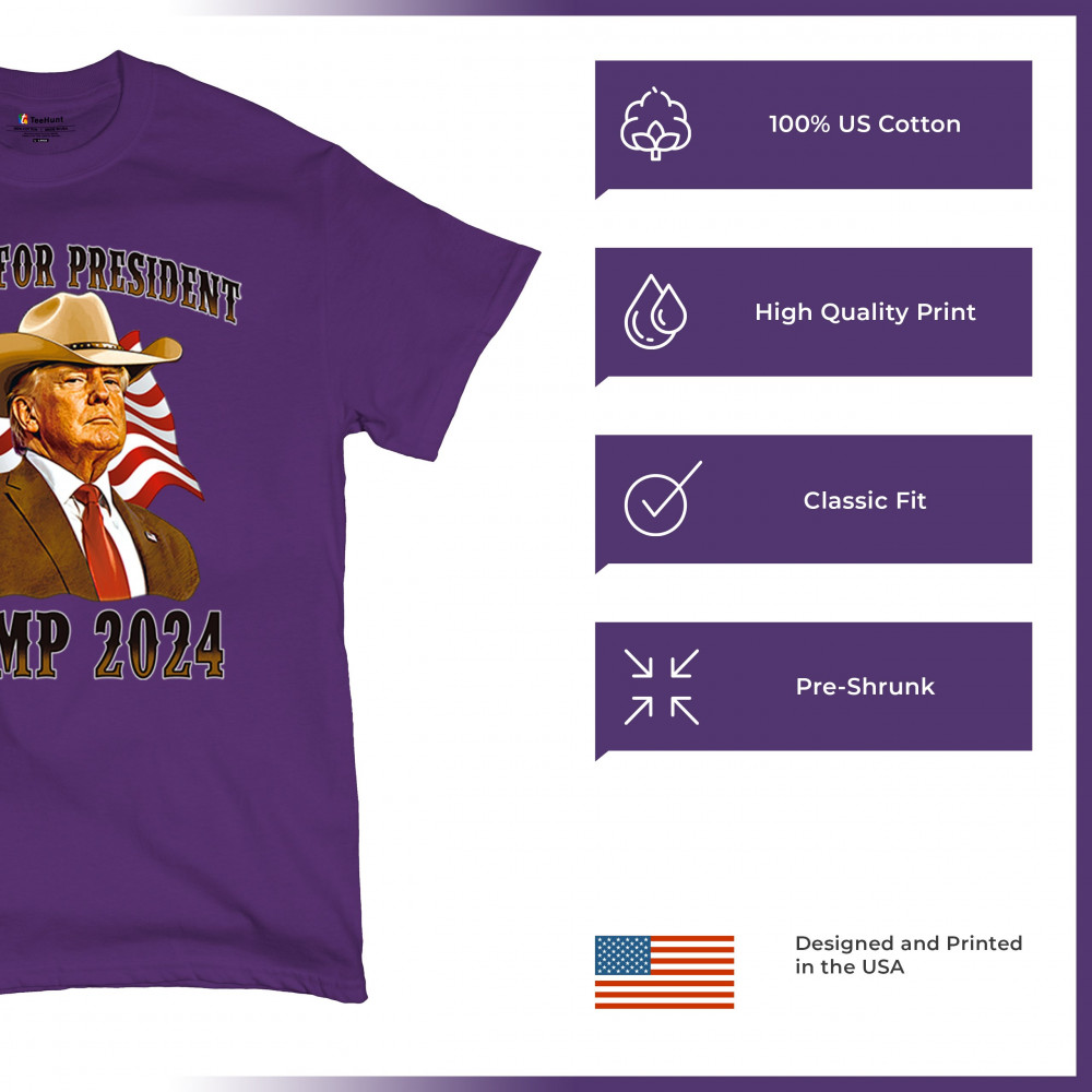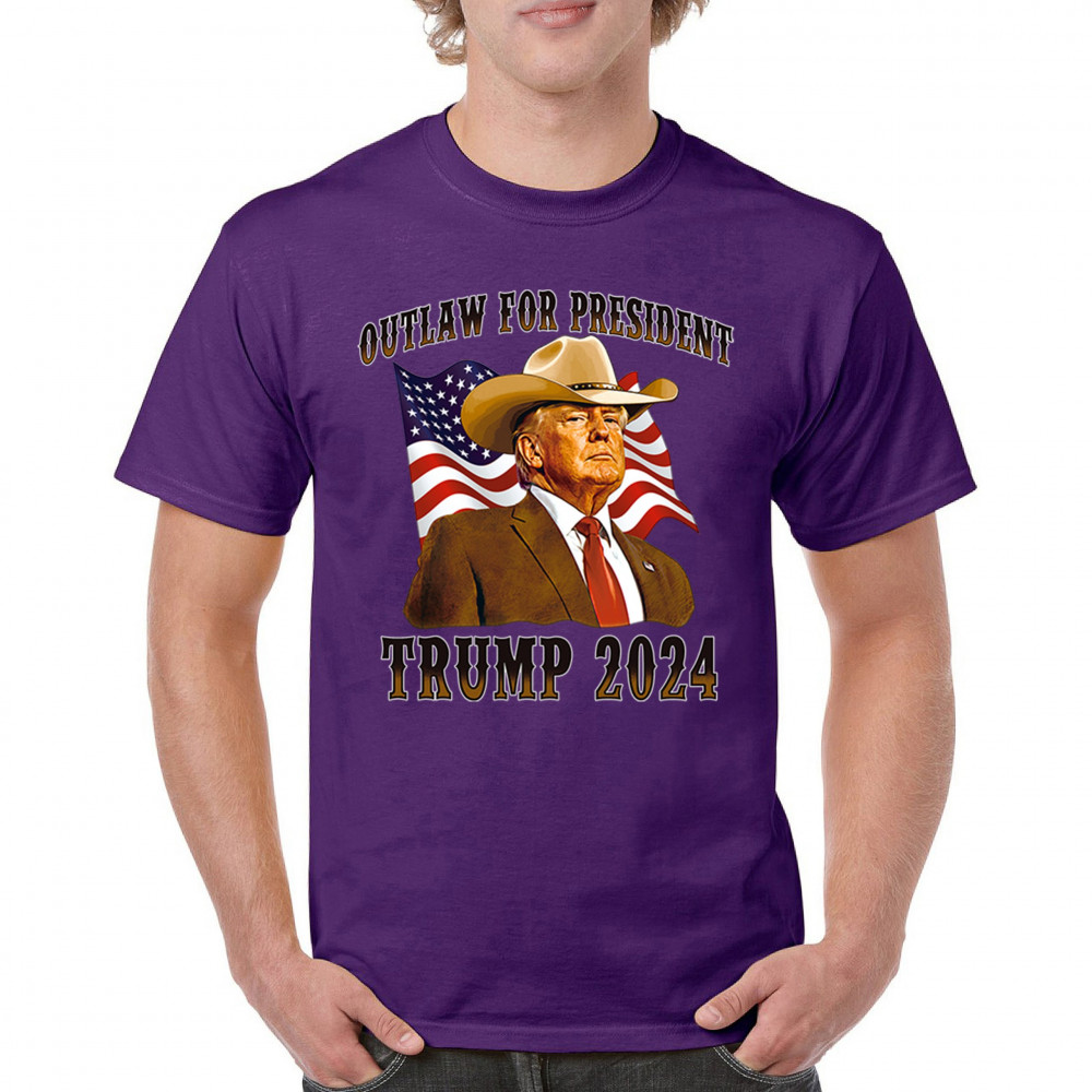 The "Outlaw for President" Trump 2024 design is a powerful symbol of American resilience and conservative pride. Featuring Donald J. Trump in a cowboy hat with the American flag waving behind, this design speaks to supporters who believe in the America First movement, conservative values, and a rebel spirit. Ideal for rallies, patriotic events, and anyone looking to make a bold statement for the 47th President of the United States.
