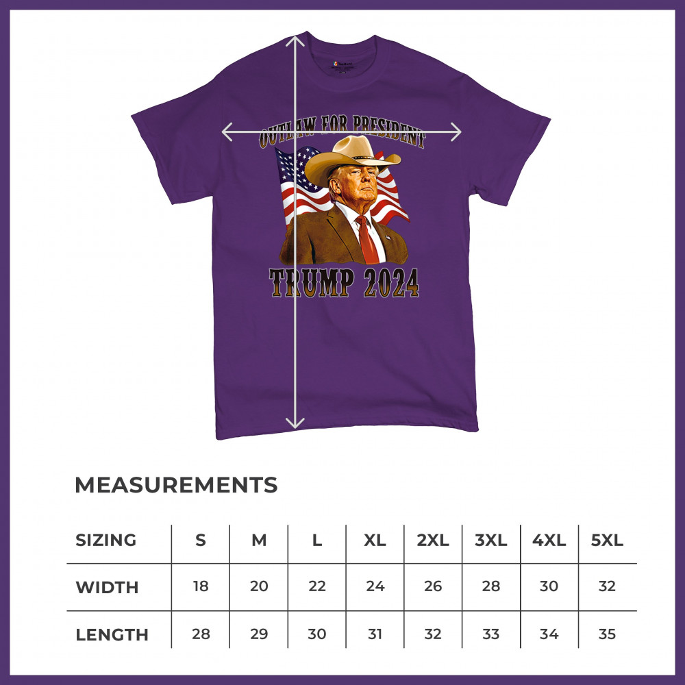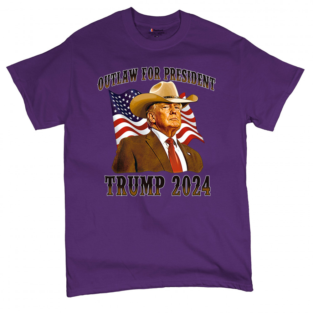 Bold "Outlaw for President" Trump 2024 design for conservative supporters, featuring Donald J. Trump and the American flag. Show your patriotism.
