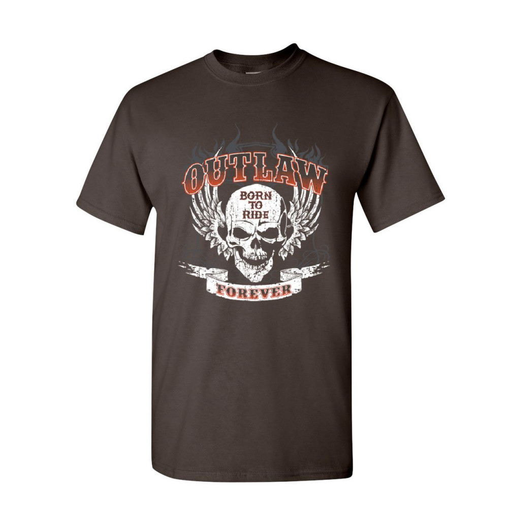 OUTLAW FOREVER t-shirt born to ride mc chopper bobber mens tee shirt brown