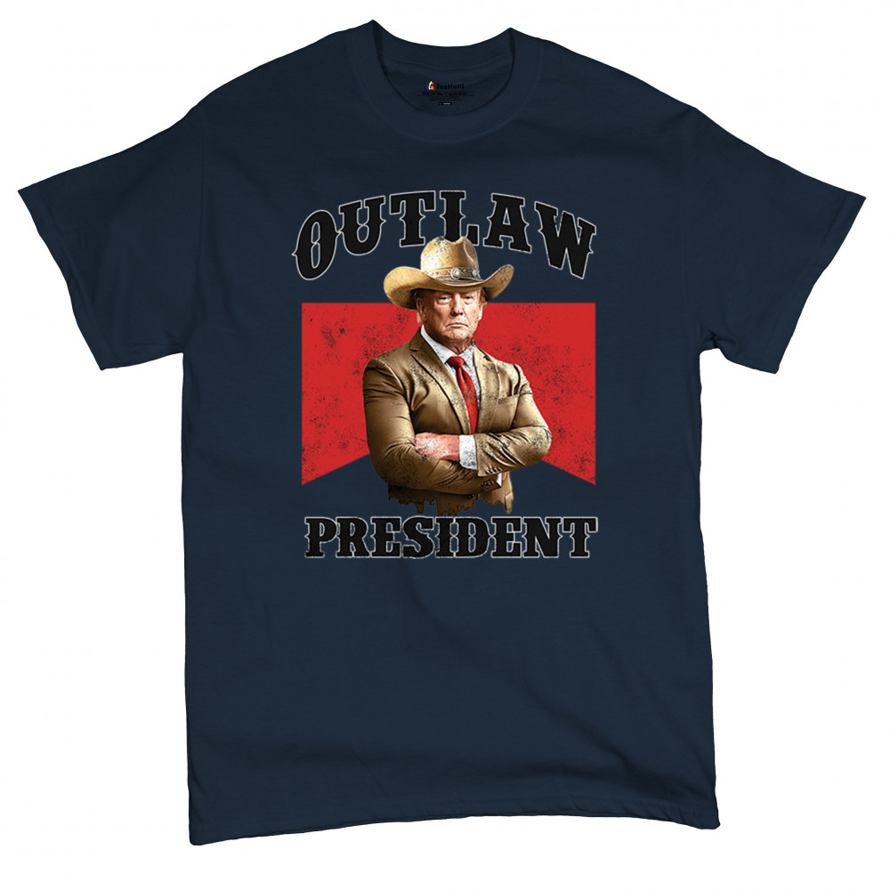 Celebrate America First with the "Outlaw President" design! Support Donald J. Trump, the Red Wave, and conservative values in bold style.