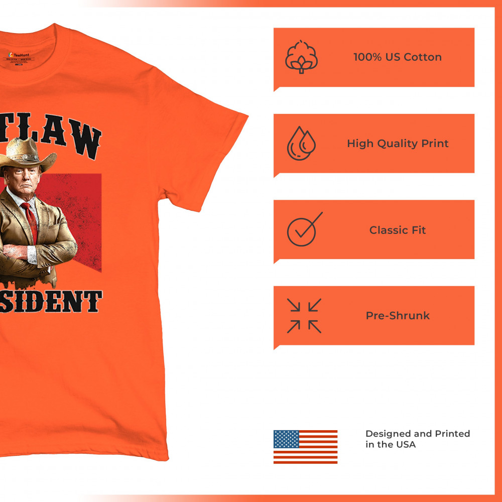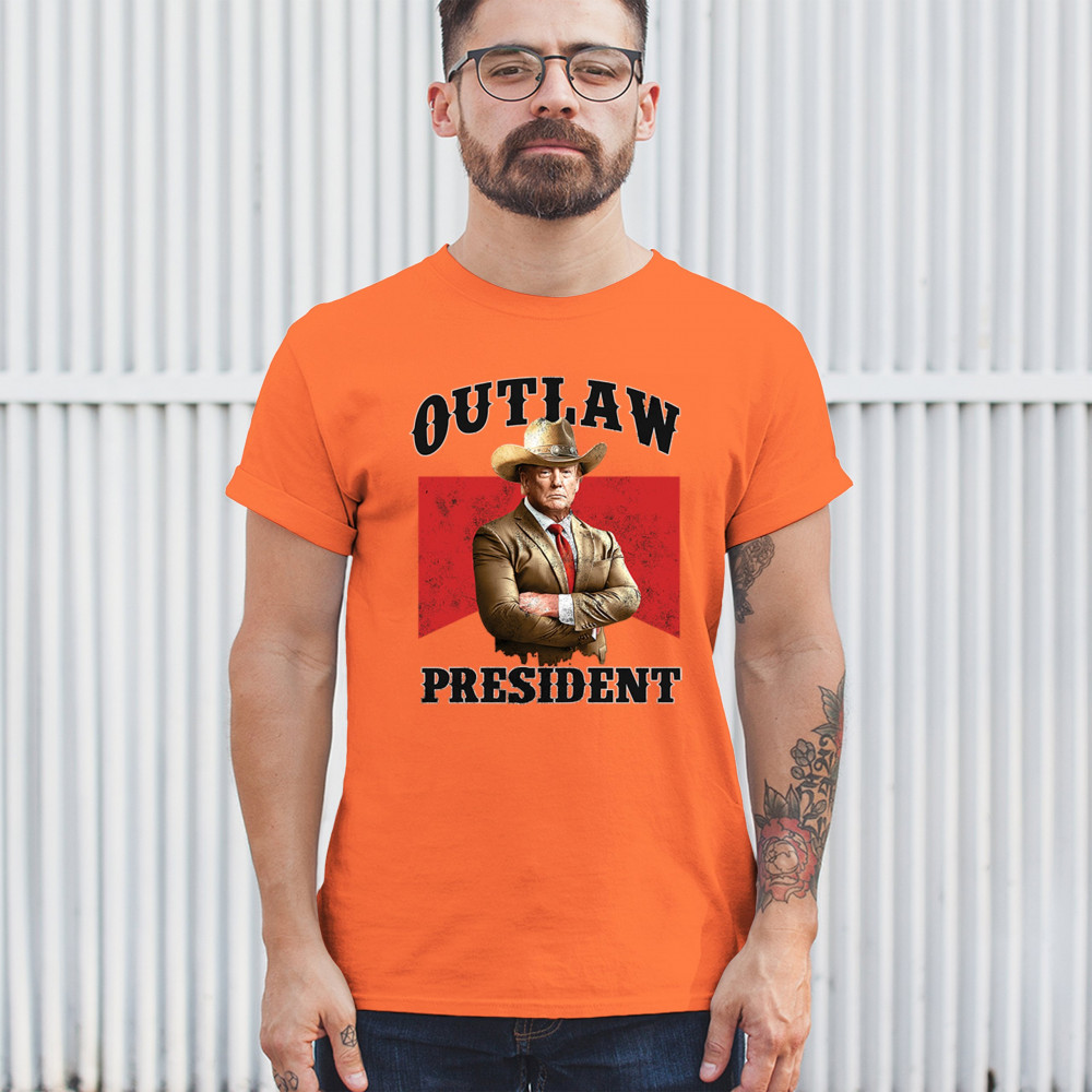 Celebrate America First with the "Outlaw President" design! Support Donald J. Trump, the Red Wave, and conservative values in bold style.