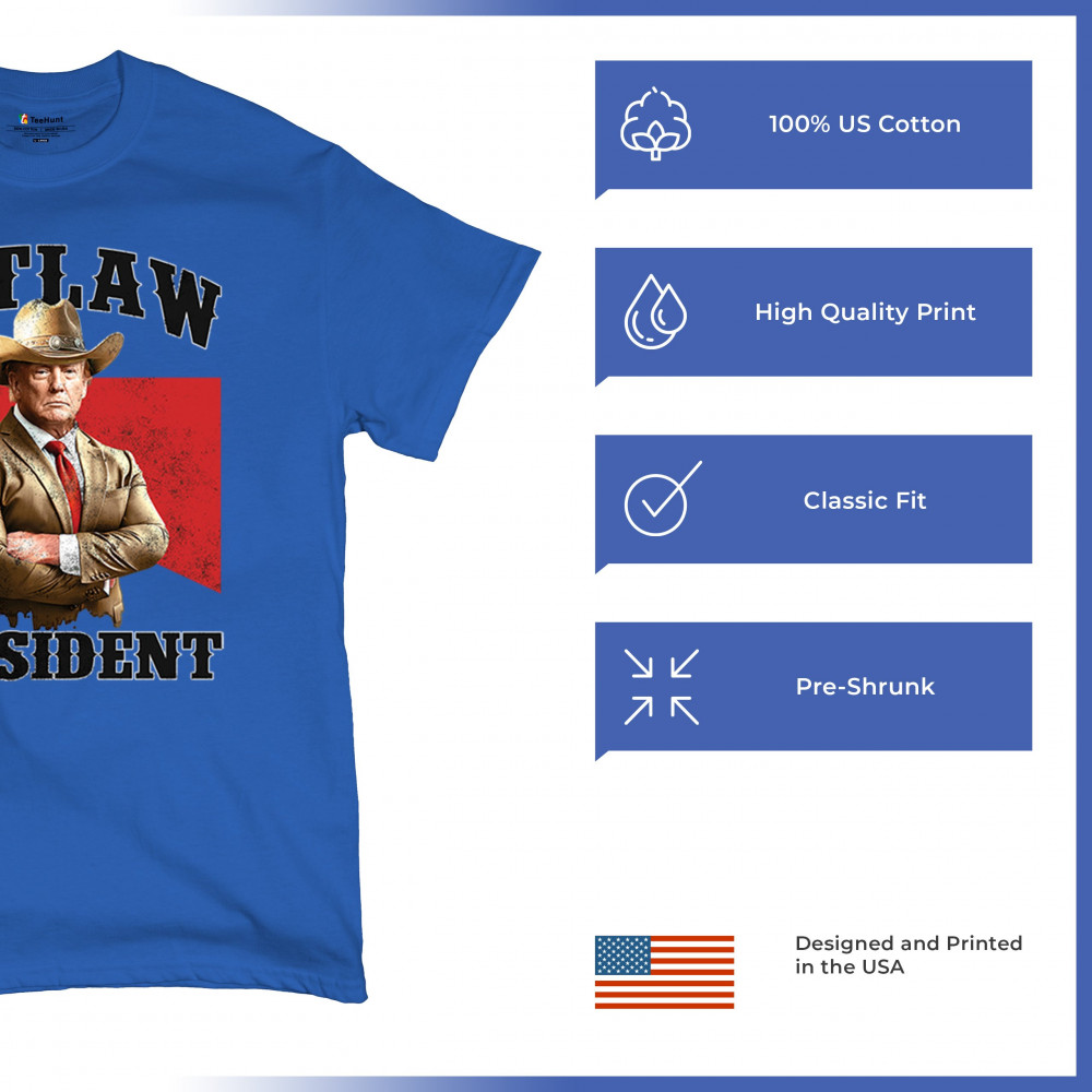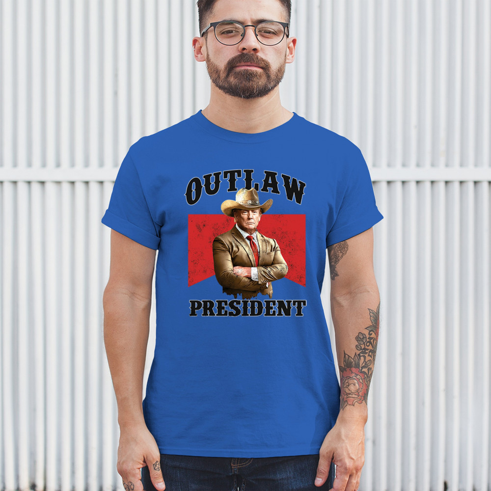 Celebrate America First with the "Outlaw President" design! Support Donald J. Trump, the Red Wave, and conservative values in bold style.