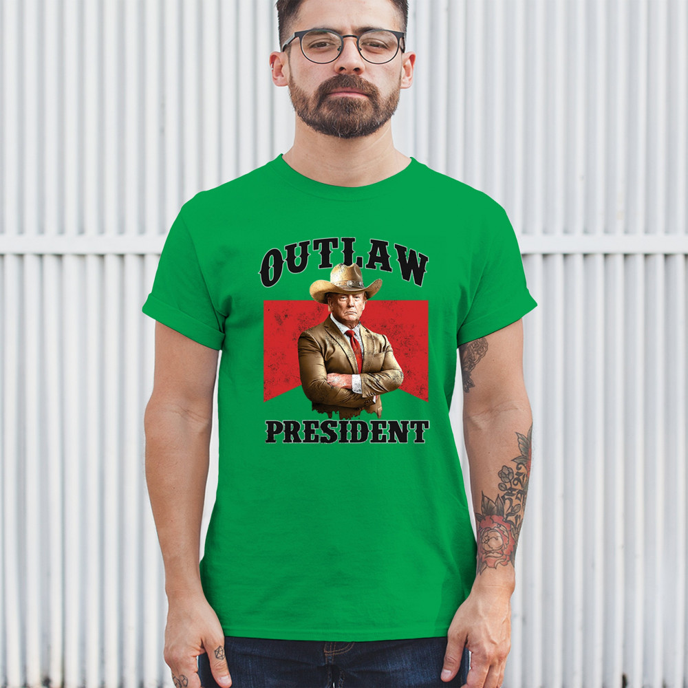 Celebrate America First with the "Outlaw President" design! Support Donald J. Trump, the Red Wave, and conservative values in bold style.