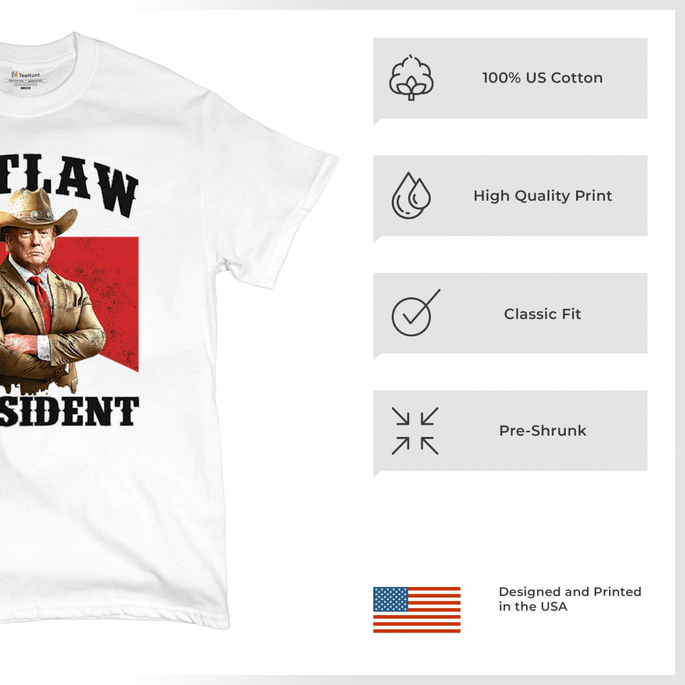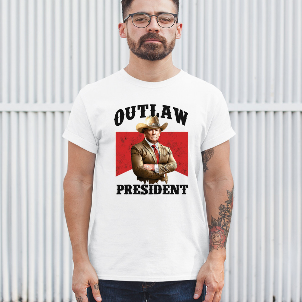 Celebrate America First with the "Outlaw President" design! Support Donald J. Trump, the Red Wave, and conservative values in bold style.