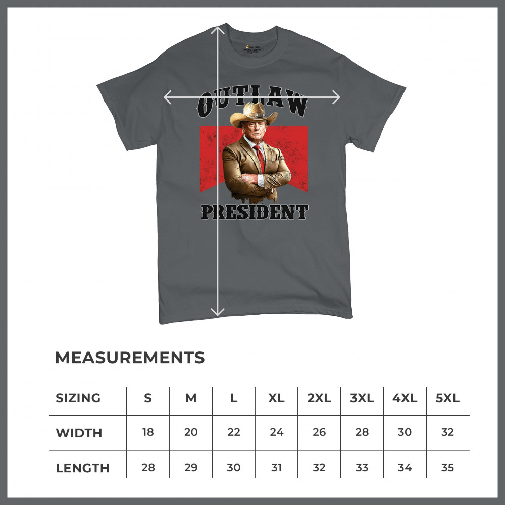 Celebrate America First with the "Outlaw President" design! Support Donald J. Trump, the Red Wave, and conservative values in bold style.
