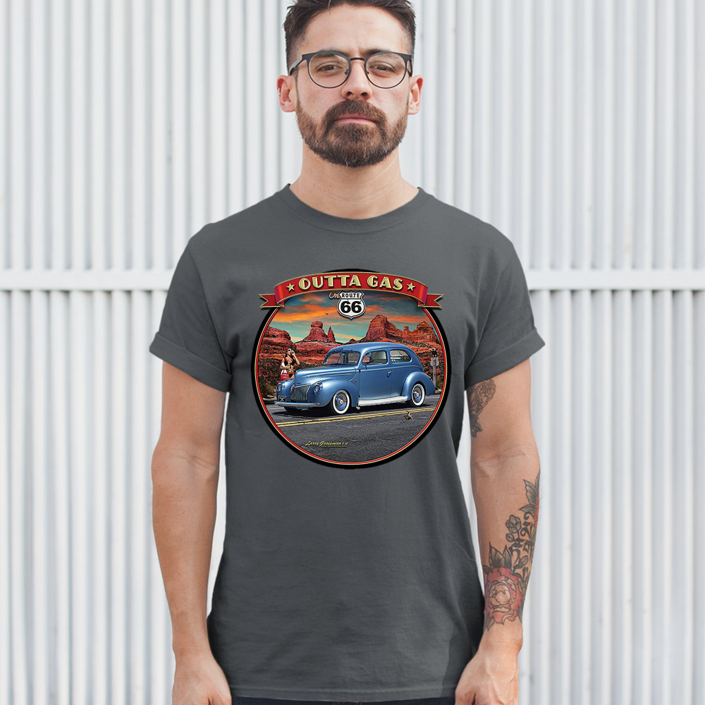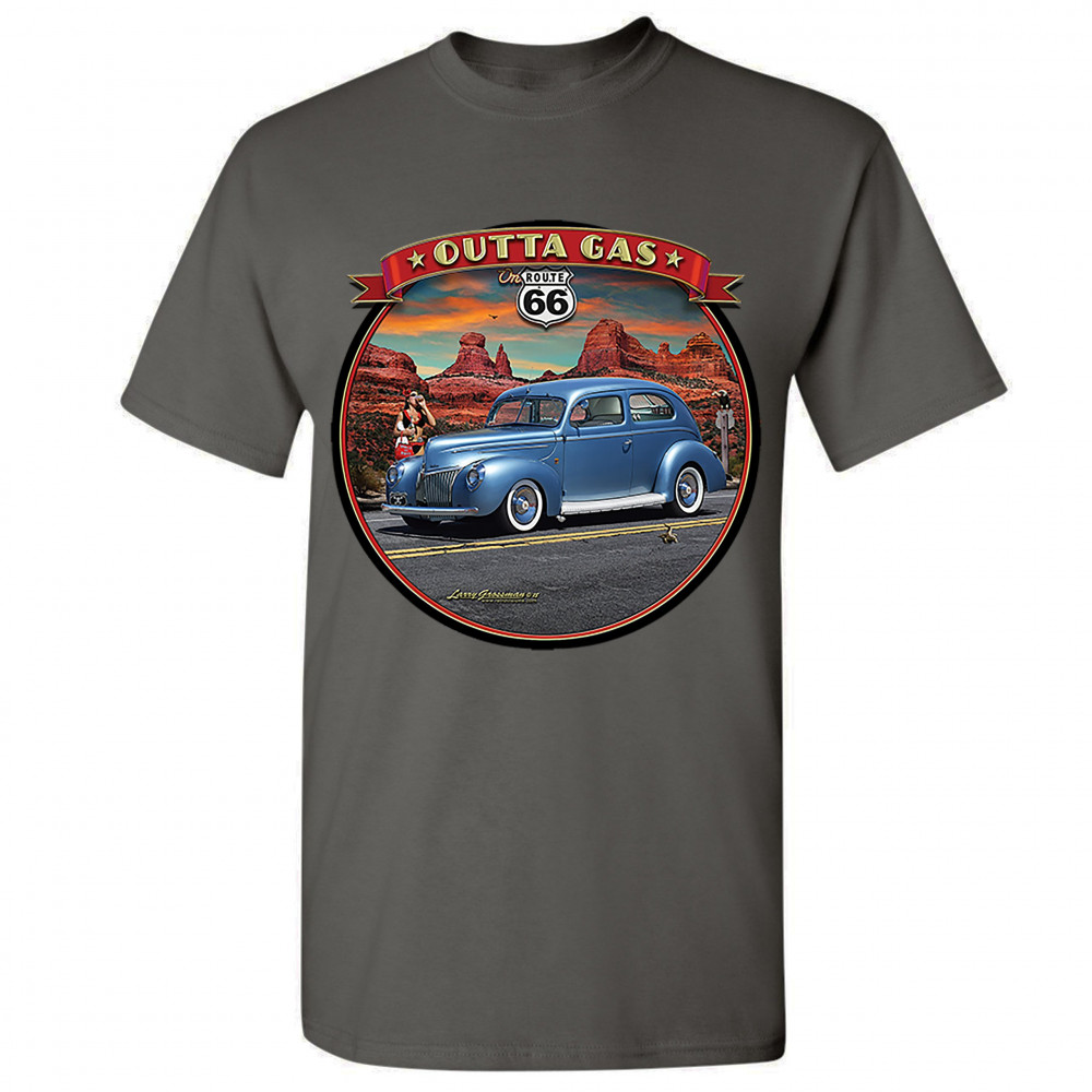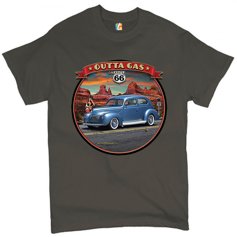 OUTTA GAS ON ROUTE 66 t-shirt the mother road retro vintage men's tee charcoal