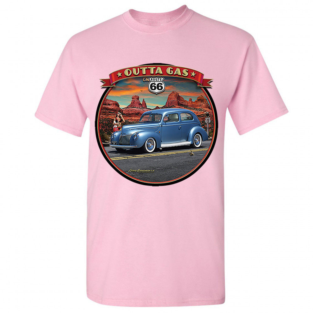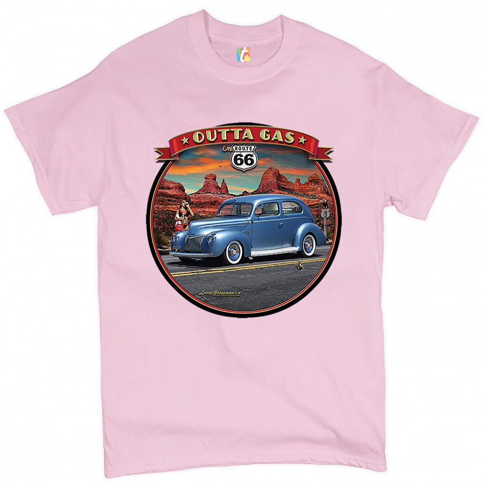 OUTTA GAS ON ROUTE 66 t-shirt the mother road retro vintage men's tee light pink