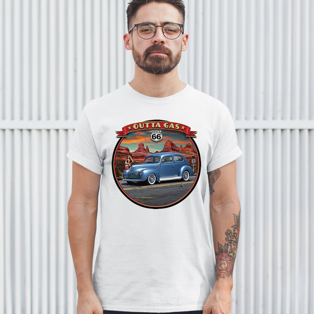 OUTTA GAS ON ROUTE 66 t-shirt the mother road retro vintage men's tee white