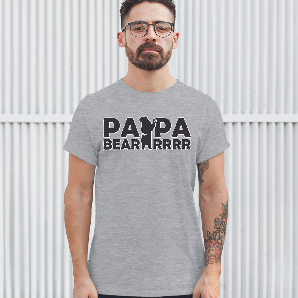 PAPA BEAR t-shirt father's day gift funny protective dad daddy men's tee sport gray