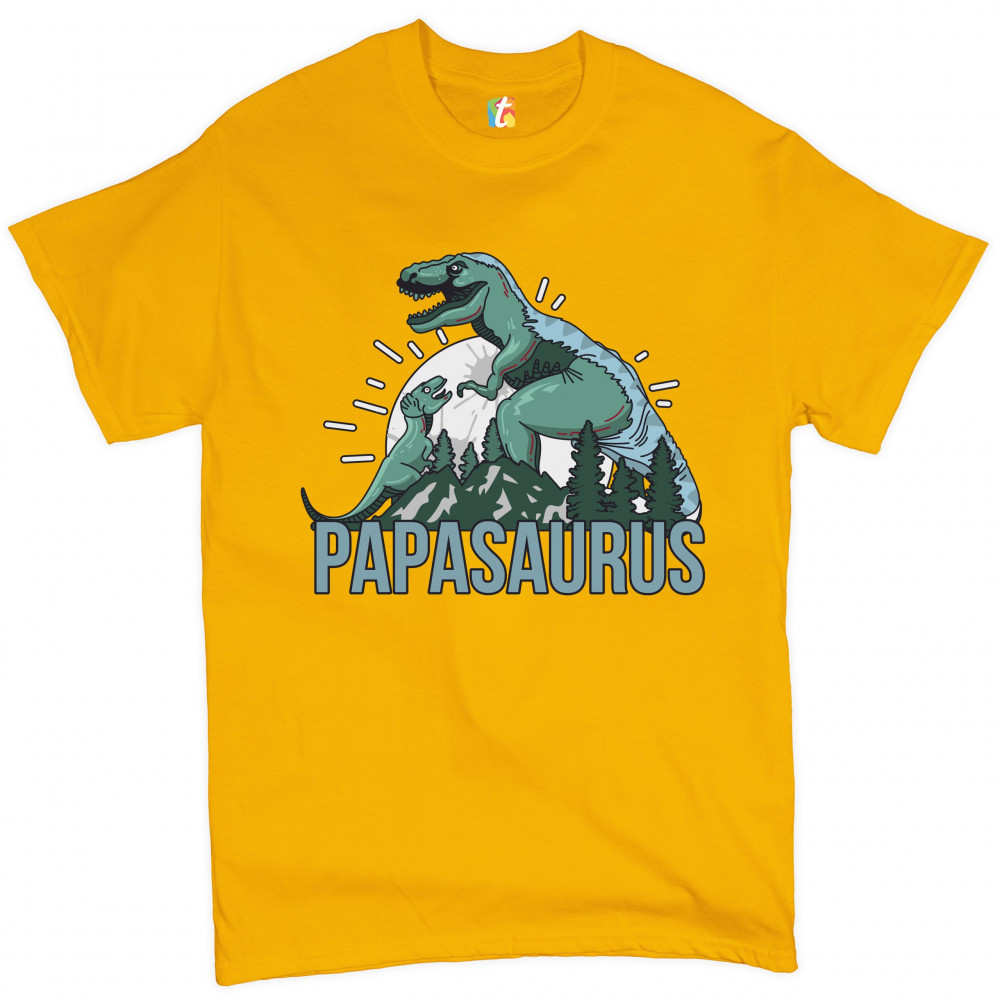 PAPASAURUS t-shirt father's day t-rex dinosaur grandpa funny daddy men's tee yellow