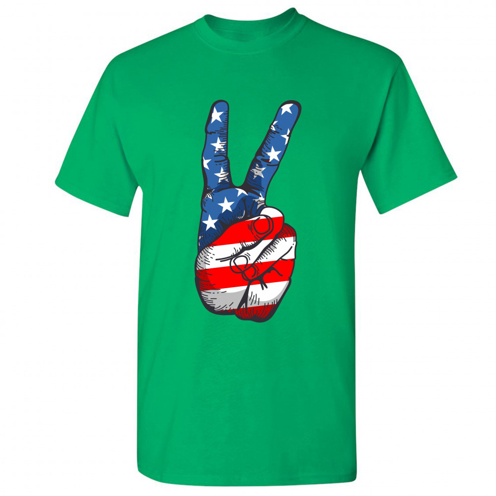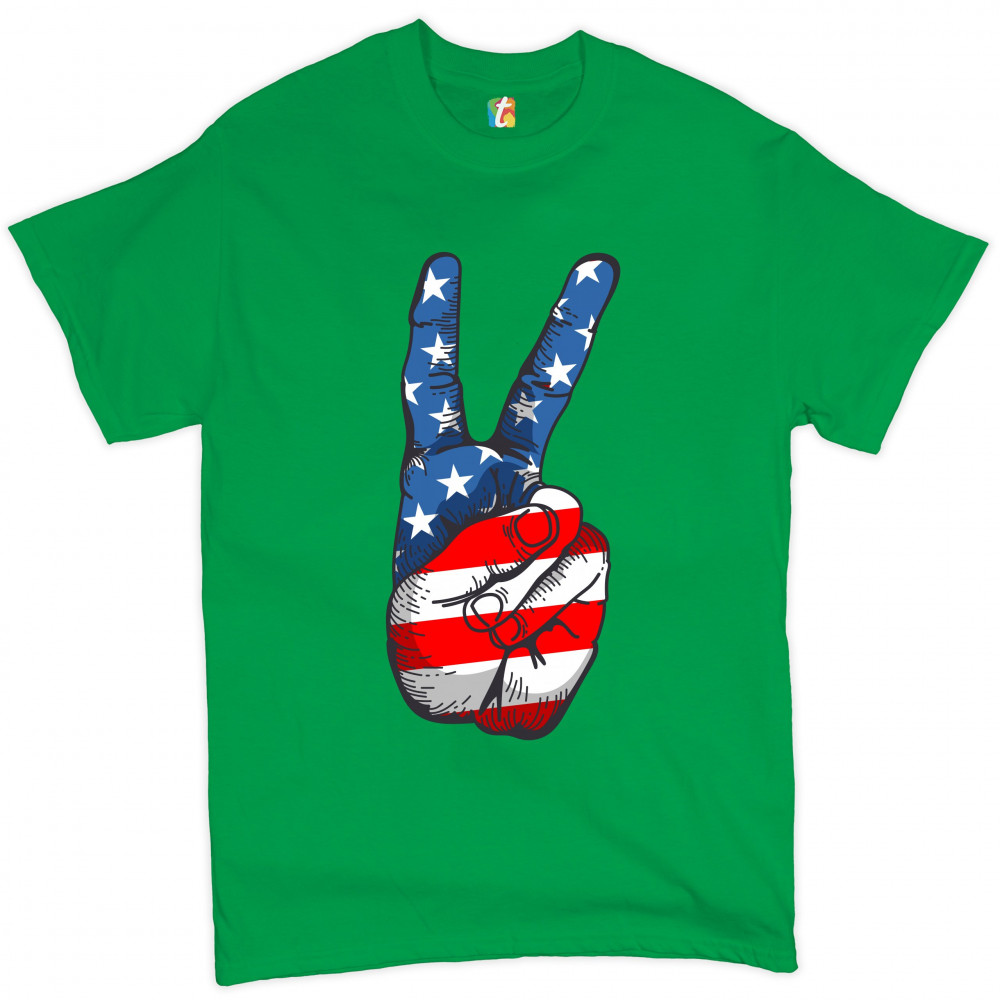 PATRIOTIC VICTORY SIGN t-shirt american flag usa independence day men's tee green
