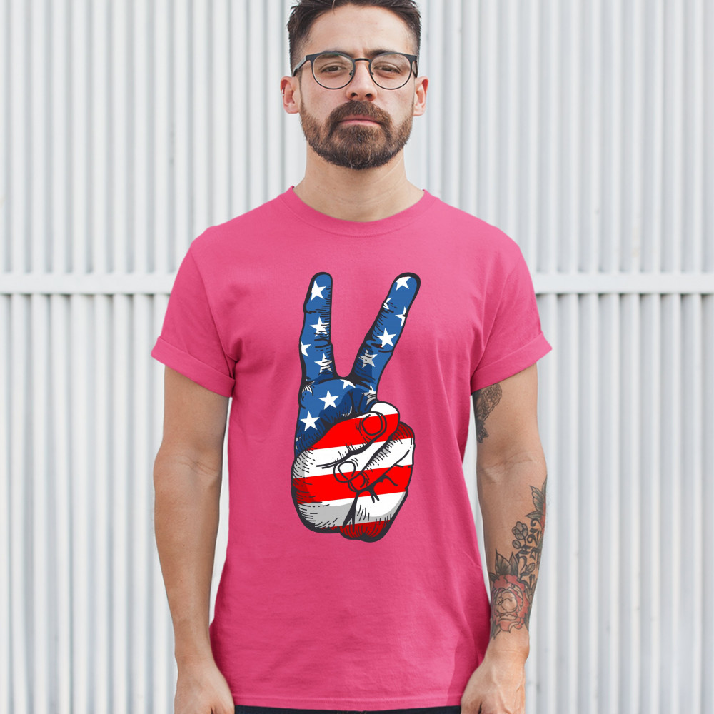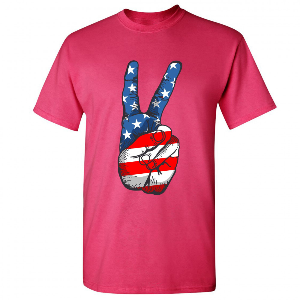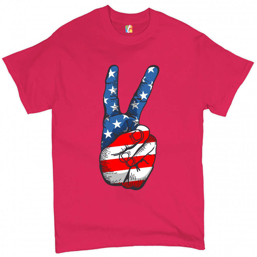 PATRIOTIC VICTORY SIGN t-shirt american flag usa independence day men's tee hot pink