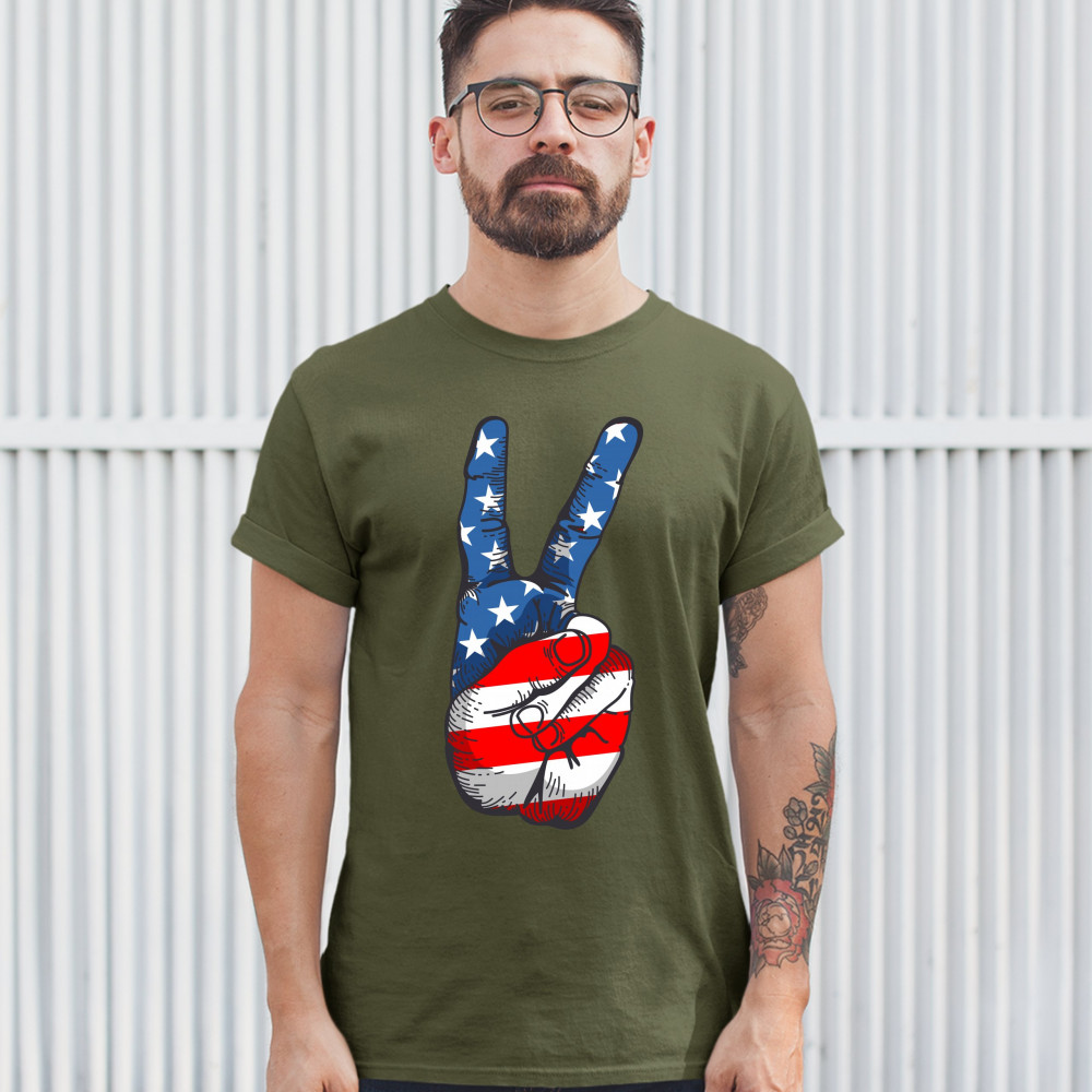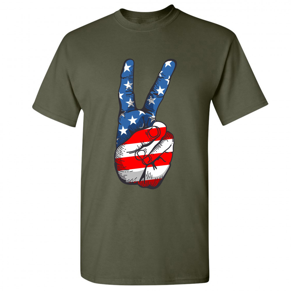 PATRIOTIC VICTORY SIGN t-shirt american flag usa independence day men's tee military green