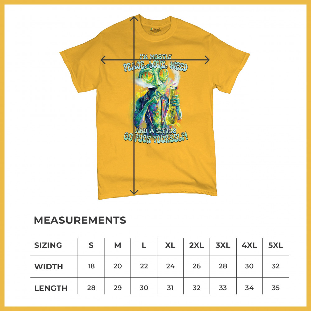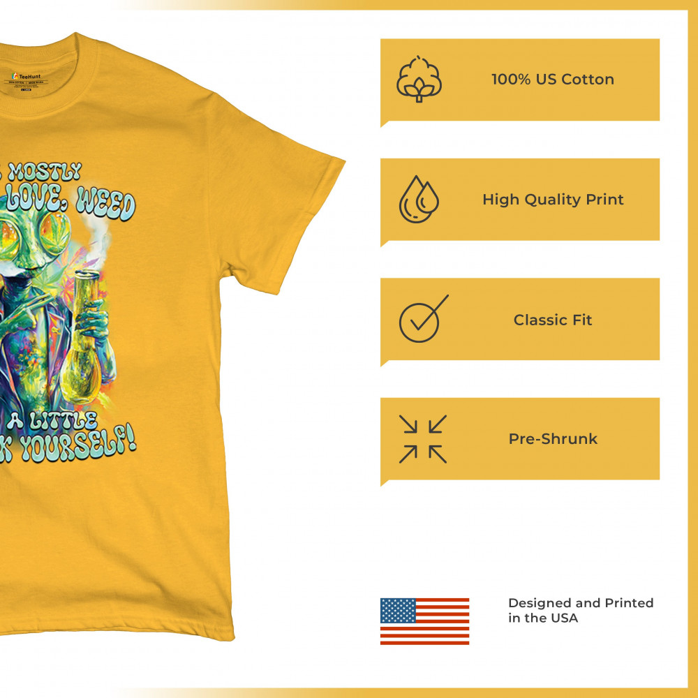 This bold alien stoner design fuses colorful weed art with raw honesty and stoner attitude. Featuring a high alien and vibrant peace love weed vibe, it's perfect for unapologetic smokers who blend kindness and truth. Wear it at festivals, smoke sessions, or whenever your mood is 80% peace, 20% sarcasm. It’s humor, cannabis culture, and bold energy rolled into one.