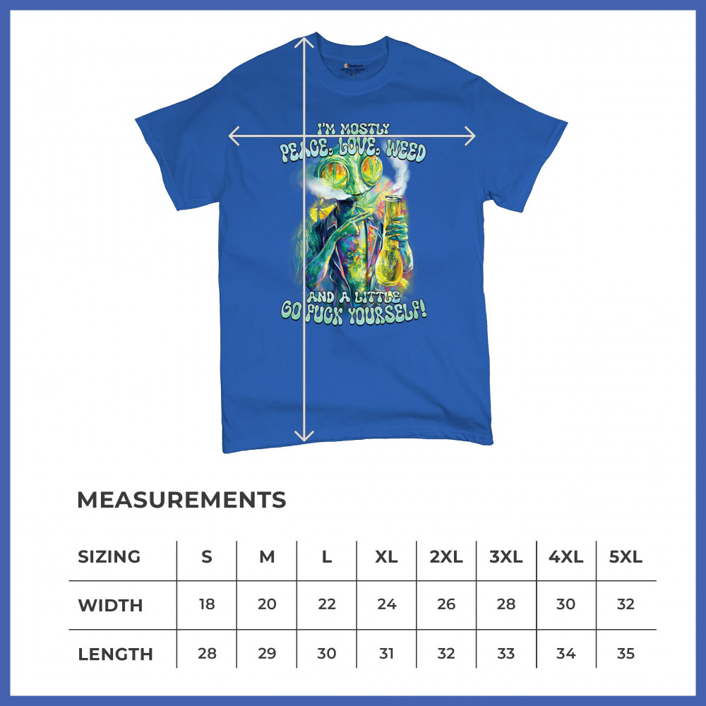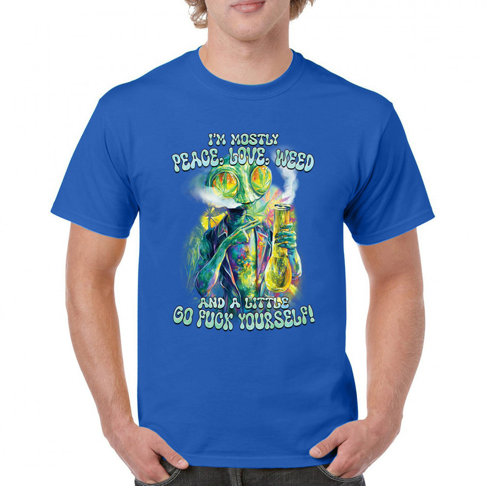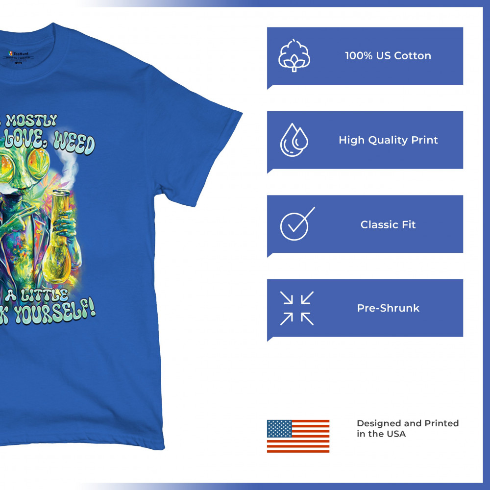 This bold alien stoner design fuses colorful weed art with raw honesty and stoner attitude. Featuring a high alien and vibrant peace love weed vibe, it's perfect for unapologetic smokers who blend kindness and truth. Wear it at festivals, smoke sessions, or whenever your mood is 80% peace, 20% sarcasm. It’s humor, cannabis culture, and bold energy rolled into one.