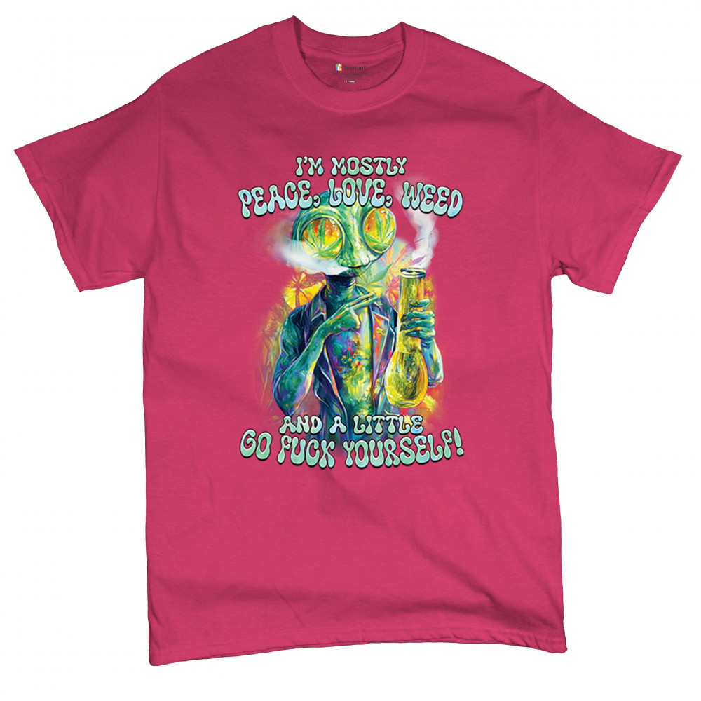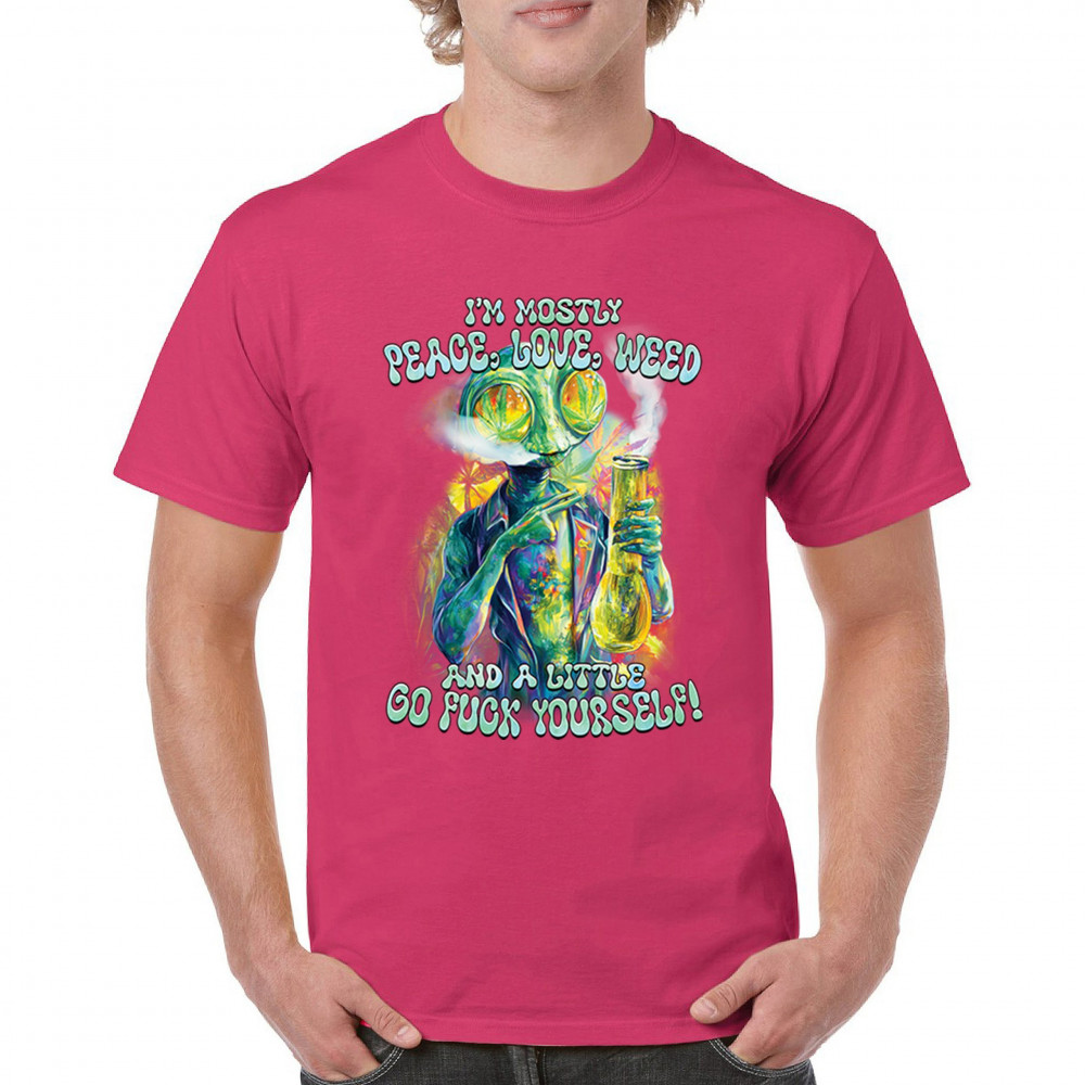 This bold alien stoner design fuses colorful weed art with raw honesty and stoner attitude. Featuring a high alien and vibrant peace love weed vibe, it's perfect for unapologetic smokers who blend kindness and truth. Wear it at festivals, smoke sessions, or whenever your mood is 80% peace, 20% sarcasm. It’s humor, cannabis culture, and bold energy rolled into one.